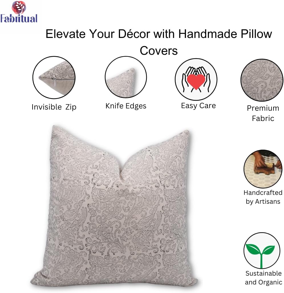 [IMPORTANT NOTE DRY CLEAN ONLY]: Ensure you dry clean as required to keep the handmade artistry of your pillow cover intact. The insert is not included, and colors may vary depending on the screen or light source. Block printing is a handmade art, ensuring slight variations as each pillow is crafted by hand with fresh flower and vegetable colors. Please cherish the handcrafted nature of this art.