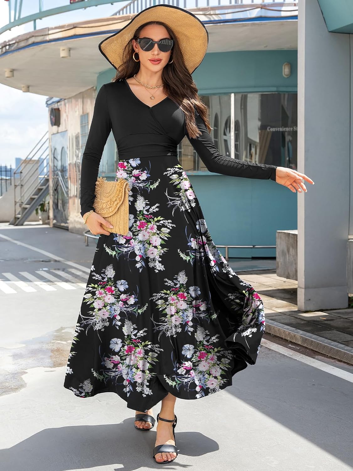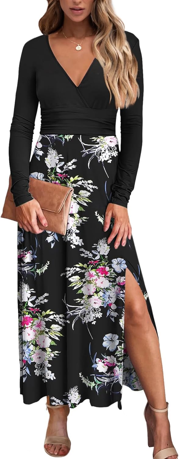 HDLTE Women Long Maxi Dress Long Sleeve Casual Fall Formal Wedding Guest with Slit