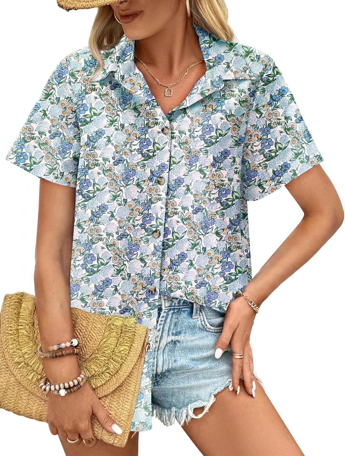 HOTOUCH Cotton Linen Button Down Shirt for Women V Neck Collared Blouse