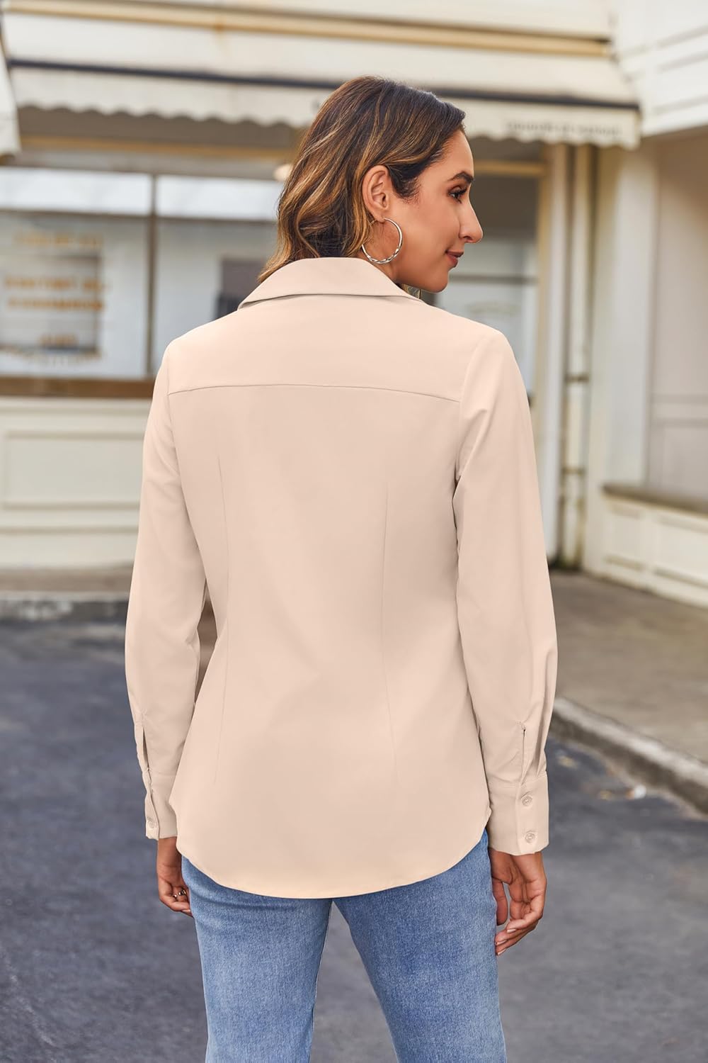 Womens Button Down Shirts Tailored Long Sleeve Shirt Basic Simple Slim Formal Collar Work Blouses