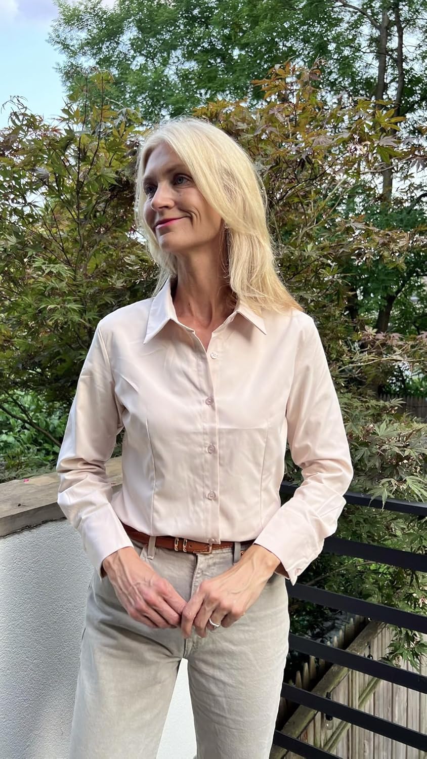Women’s Basic Button Down Shirts Long Sleeve Button Up Dress Shirt Slim Fit Casual Business Work Shirts