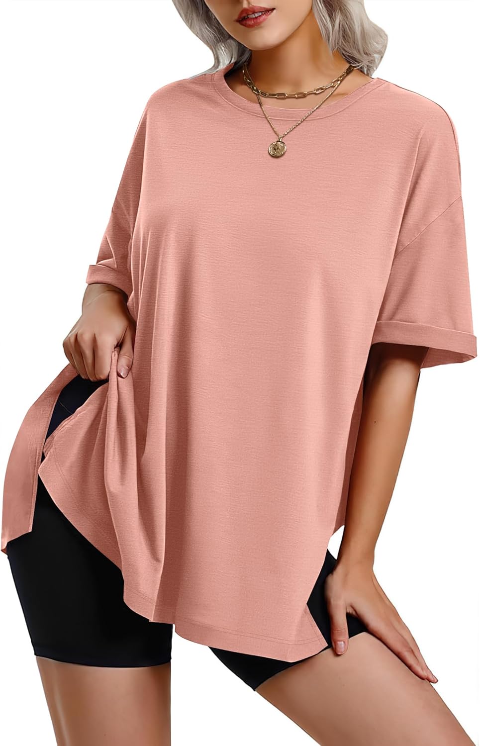 HOTOUCH Womens Oversized T Shirts Crewneck Short Sleeve Workout Blouse Tops Summer Casual Dropped Shoulder Tunic Tee