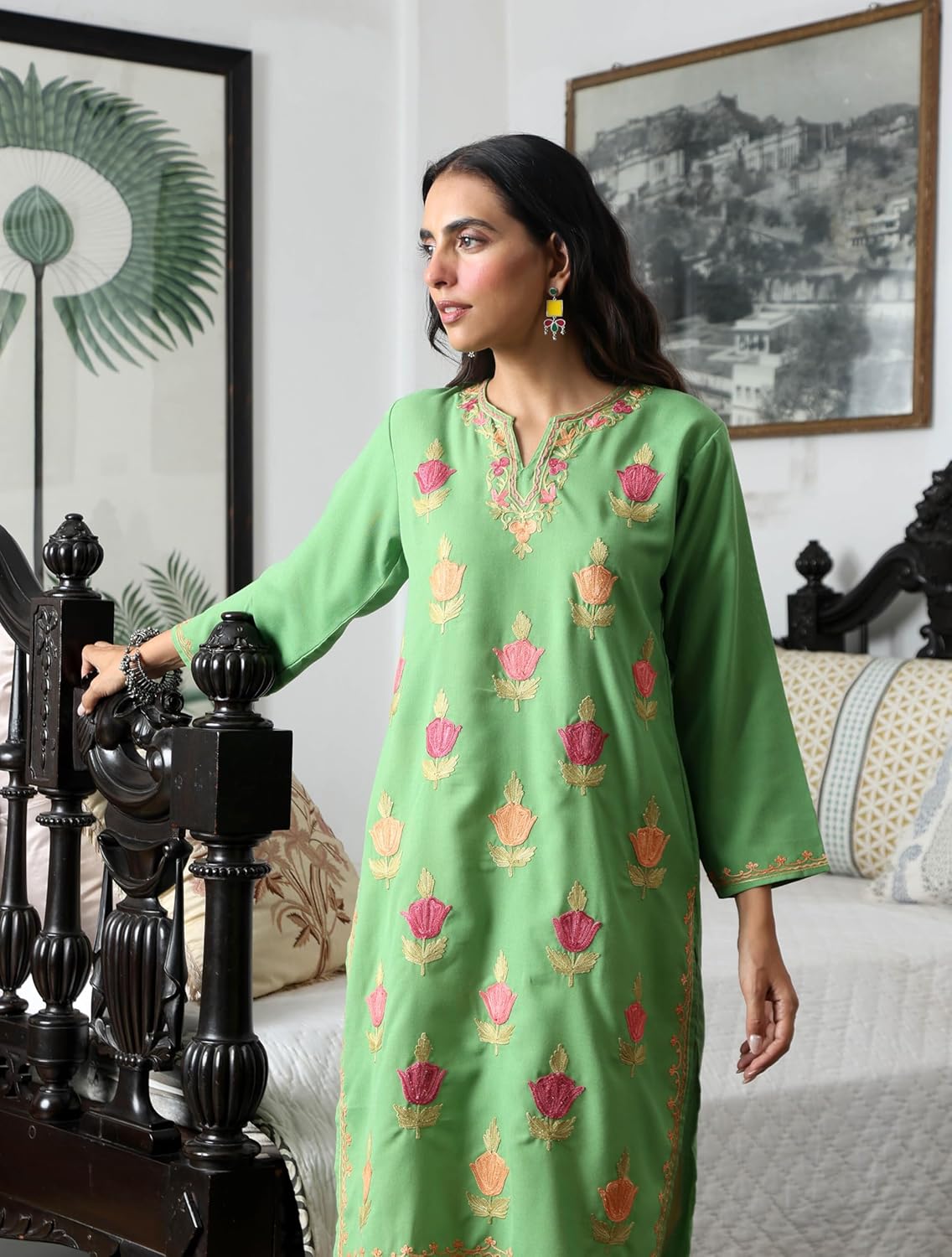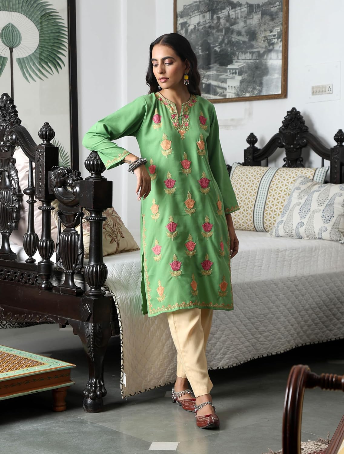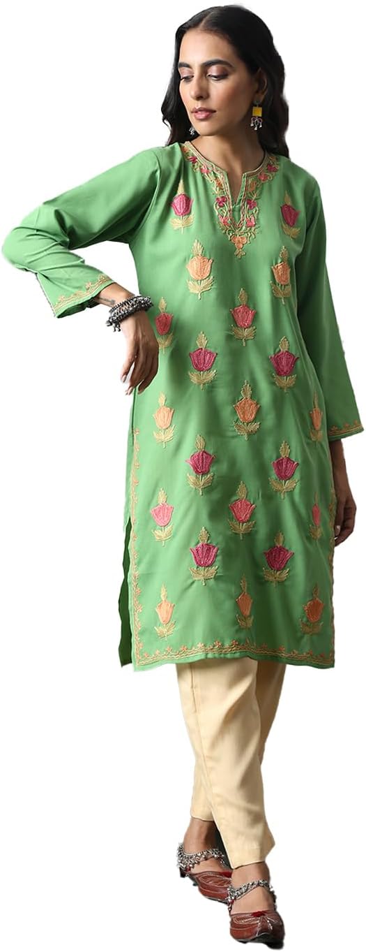 Timeless piece with beautifully adorned Aari Embroidery. A comfortable straight kurta crafted from cotton fabric