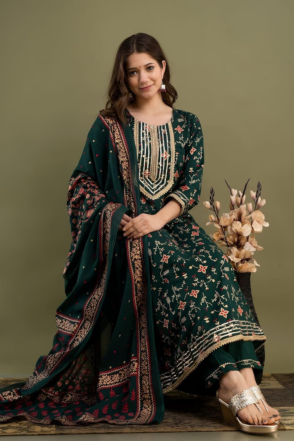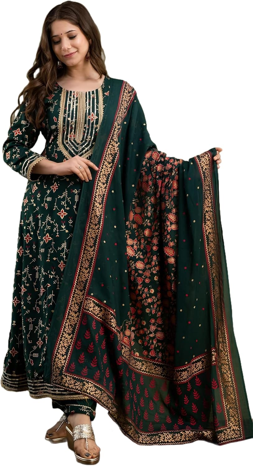 Trendy And Cool Outfit With Pure Reyon Fabric Print Gotta Detailing Anarkali Kurti With Print Pant With Full Dupatta Beautiful Printed💃 Note :- Best Quality Always ⭐Product code JH ⭐ Size: M/38, L/40, XL/42, XXL/44, XXXL/46 ⭐ Big Size: 4XL/48,5XL/50,6XL/52 ⭐ Fabric: Reyon 14KG ⭐Product: Kurti + Pant+ Dupatta ⭐ lenght Anarkali Kurti “48” Pant “38” Dupatta “2.10 Mitter” ⭐Color`s: B.Green 💚 Purple 💜 Wine💙 ⭐Work: Gotta Detailing ⭐Type: Fully stitched Size : M ,L, XL, XXL XXXL