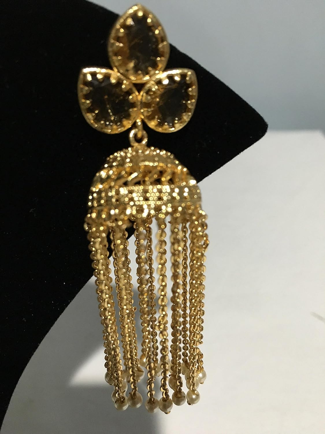 A classy combination of feminine elegance and excellent craftsmanship, these golden Jhumka will surely lend an elegant touch to your ethnic look. Sale For: 1 Earring Set; Material: Alloy Coated with 18K Micron Gold Plating Size: 3.2″ Inches Long; 0.5″ inches wide Made In India