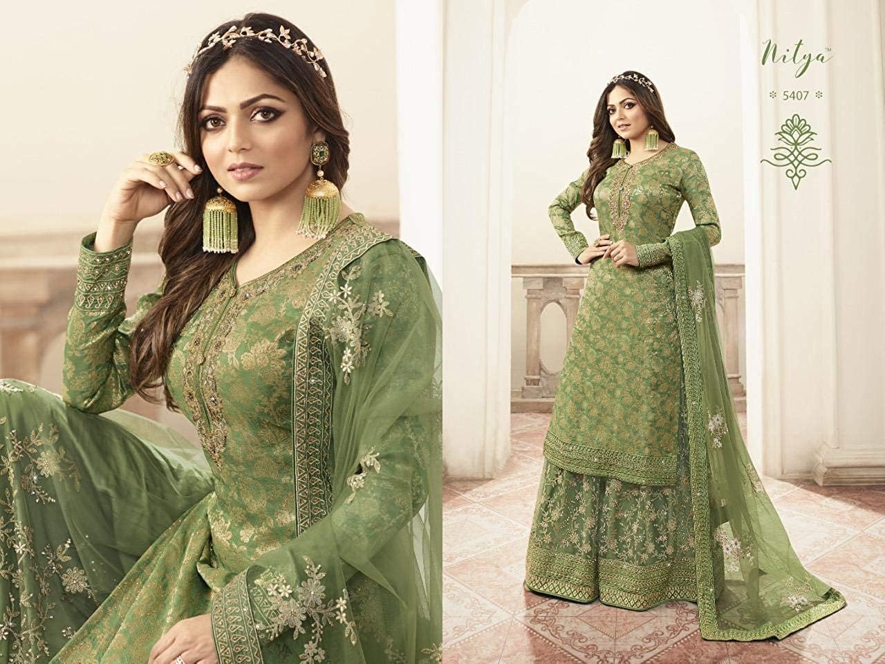 Indian Pakistani Ethnic Wear Wedding Wear Sharara Style Salwar Suit for Women Ready to Wear