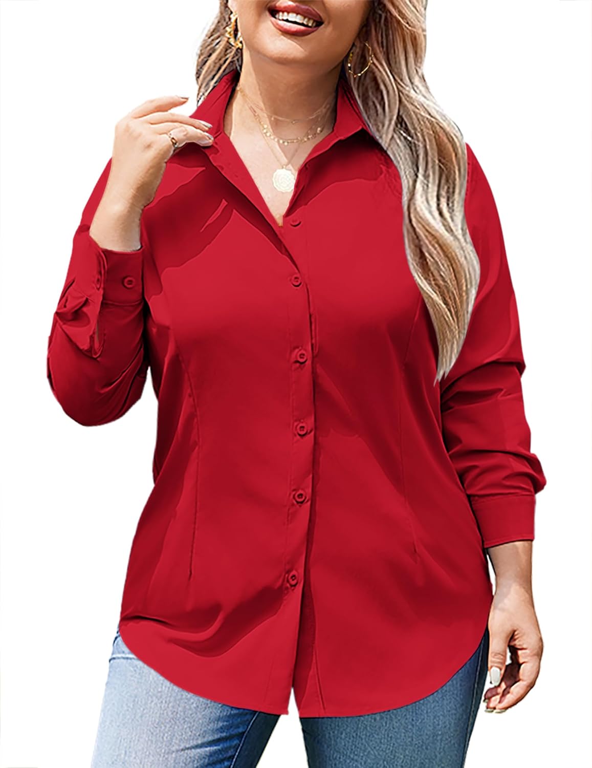 Women’s Plus Size Button Down Shirts Long Sleeve Work Blouses Office Tops