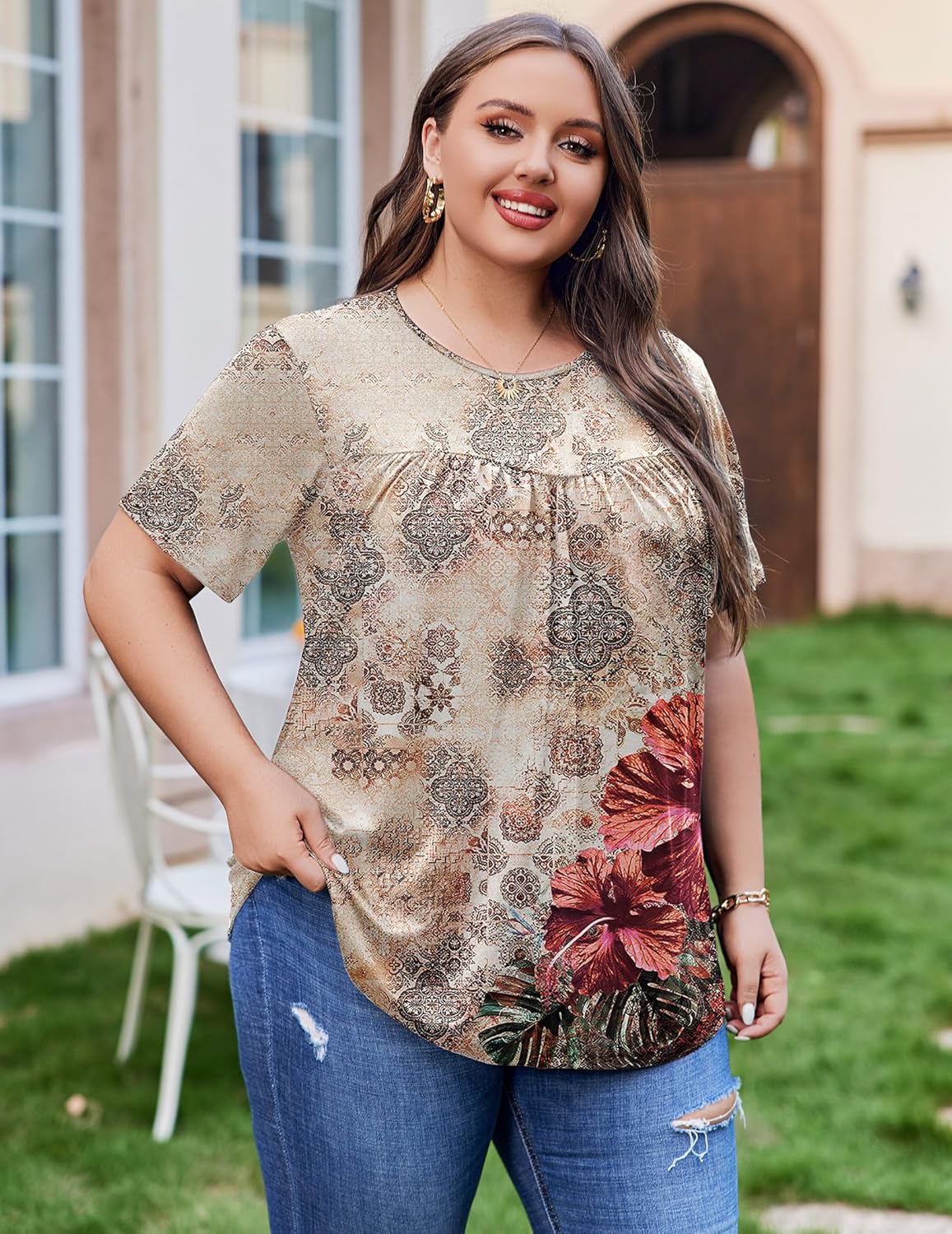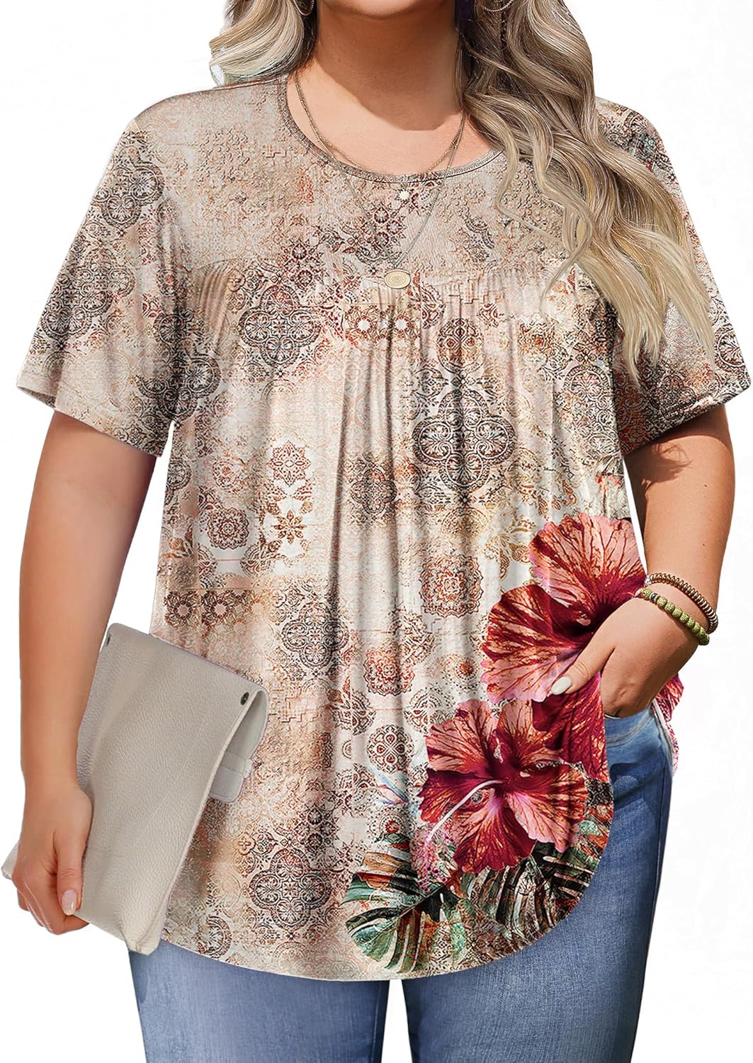Womens Plus Size Tops Short Sleeve Casual Soft Shirts