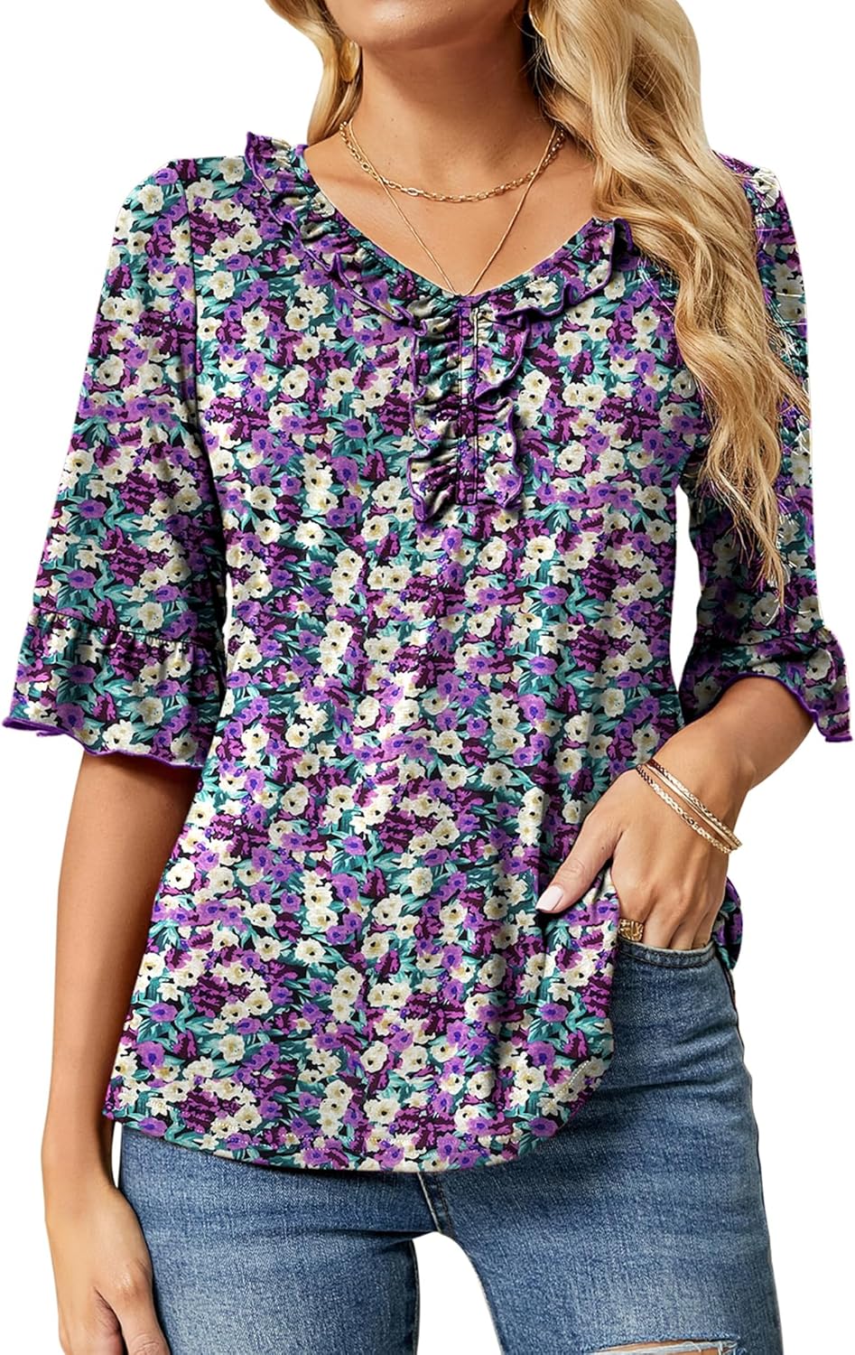 Our ruffle tops for women 2025 are made with extremely soft, comfortable and no shrinking materials, they hardly wrinkle which are great for traveling. And cute 3/4 sleeve blouses are lightweight but not too thin with a nice touch, which can easily be used throughout the year.