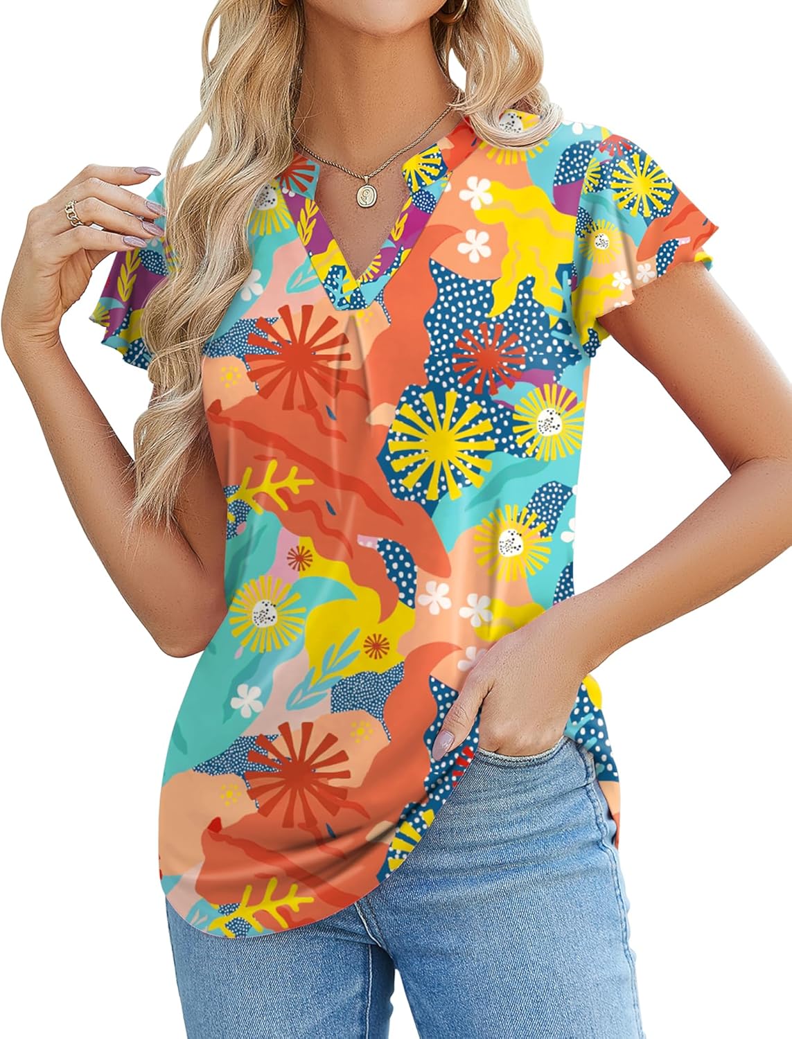 Womens Tops Dressy Casual Summer Flutter Sleeve T-Shirts