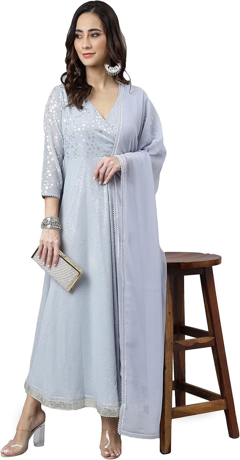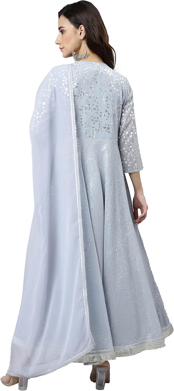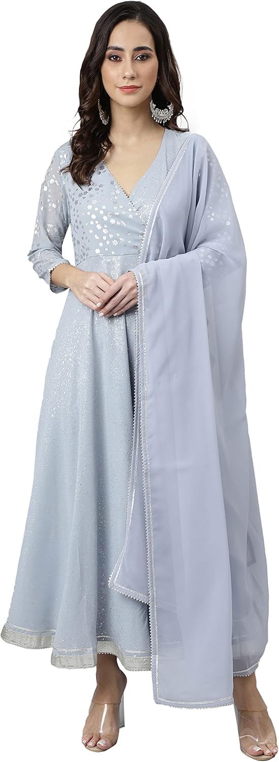 Be the first to review “Janasya Indian Women’s Grey Georgette Foil Print Kurta with Dupatta”