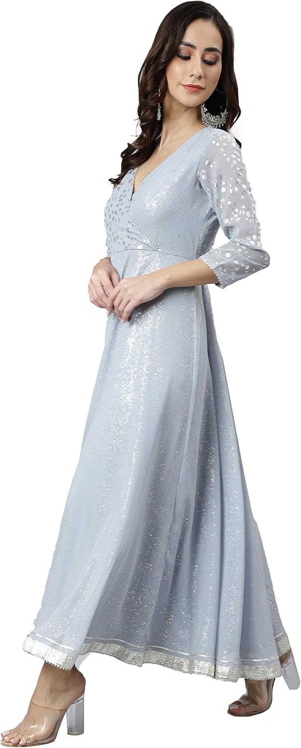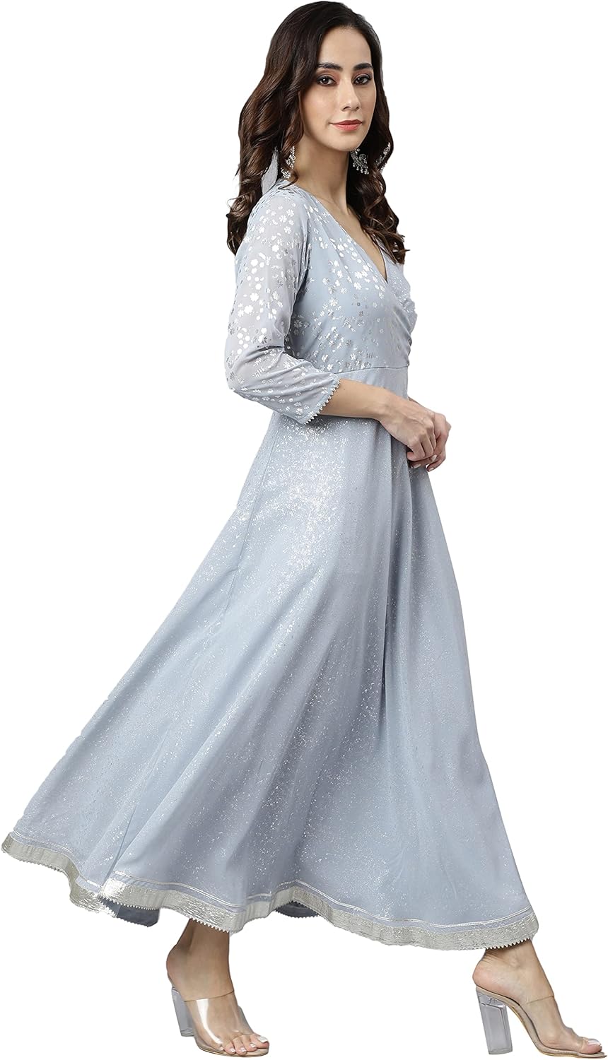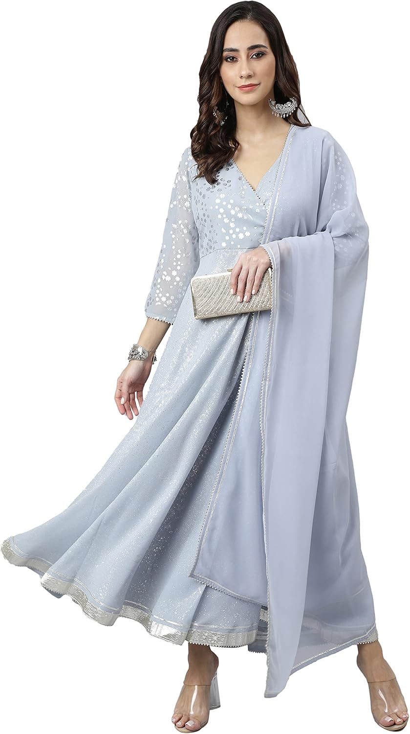 Be the first to review “Janasya Indian Women’s Grey Georgette Foil Print Kurta with Dupatta”