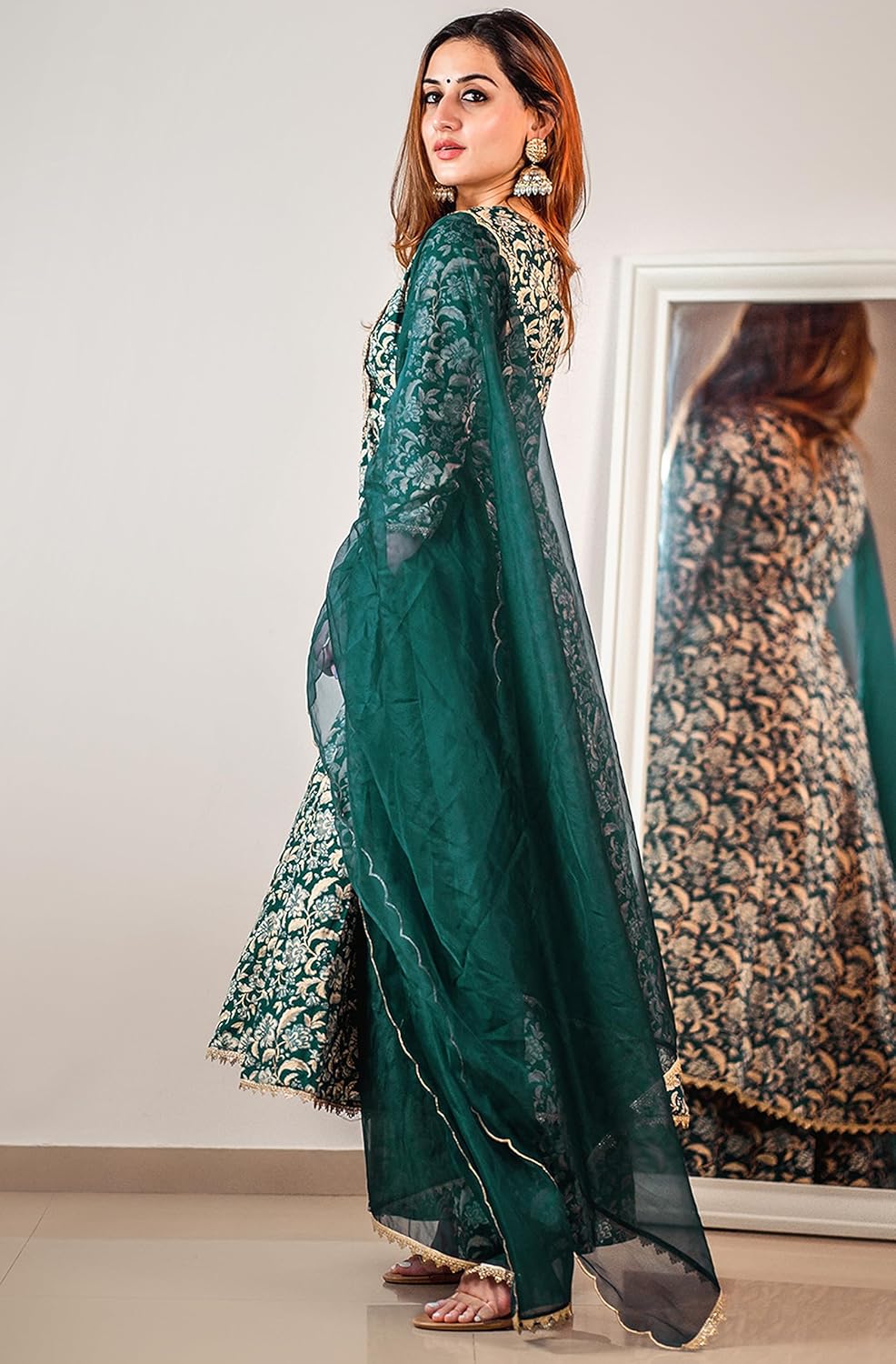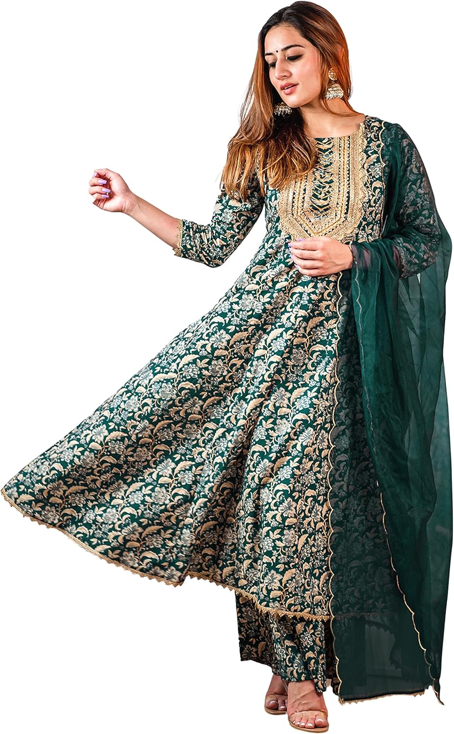 Introducing the Janasya Women’s Violet Cotton Floral Printed Kurta with Palazzo and Dupatta. The kurta is crafted from high-quality cotton fabric in a lovely Violet color. It features a vibrant floral print that adds a touch of elegance and charm. Designed in an Anarkali style, the kurta offers a flattering and flowy silhouette that enhances your feminine appeal. The kurta has 3/4th sleeves with regular length, the round neck with a calf-length of 48 inches, the kurta offers a graceful look suitable for festive occasions. Kurta features intricate lace work on the yoke and hemline, adding a touch of sophistication and elegance. The attention to detail enhances the overall aesthetic appeal of the outfit. The palazzo pants included in the set are made of Violet-colored cotton fabric. Completing the ensemble is the Violet-colored organza dupatta. With a length of 2.25 meters, it offers versatility in styling and draping options. The dupatta features a solid color, allowing it to complement the vibrant floral print of the kurta beautifully.