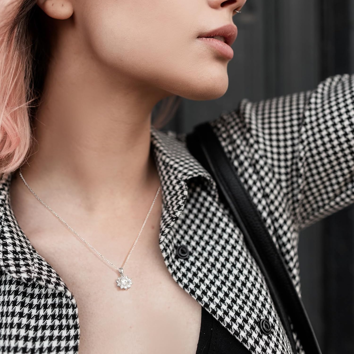 Necklace Material: Necklace is 925 sterling silver and pendant is 925 sterling silver plated 18K White Gold Necklace Length :17.7 in+2 in