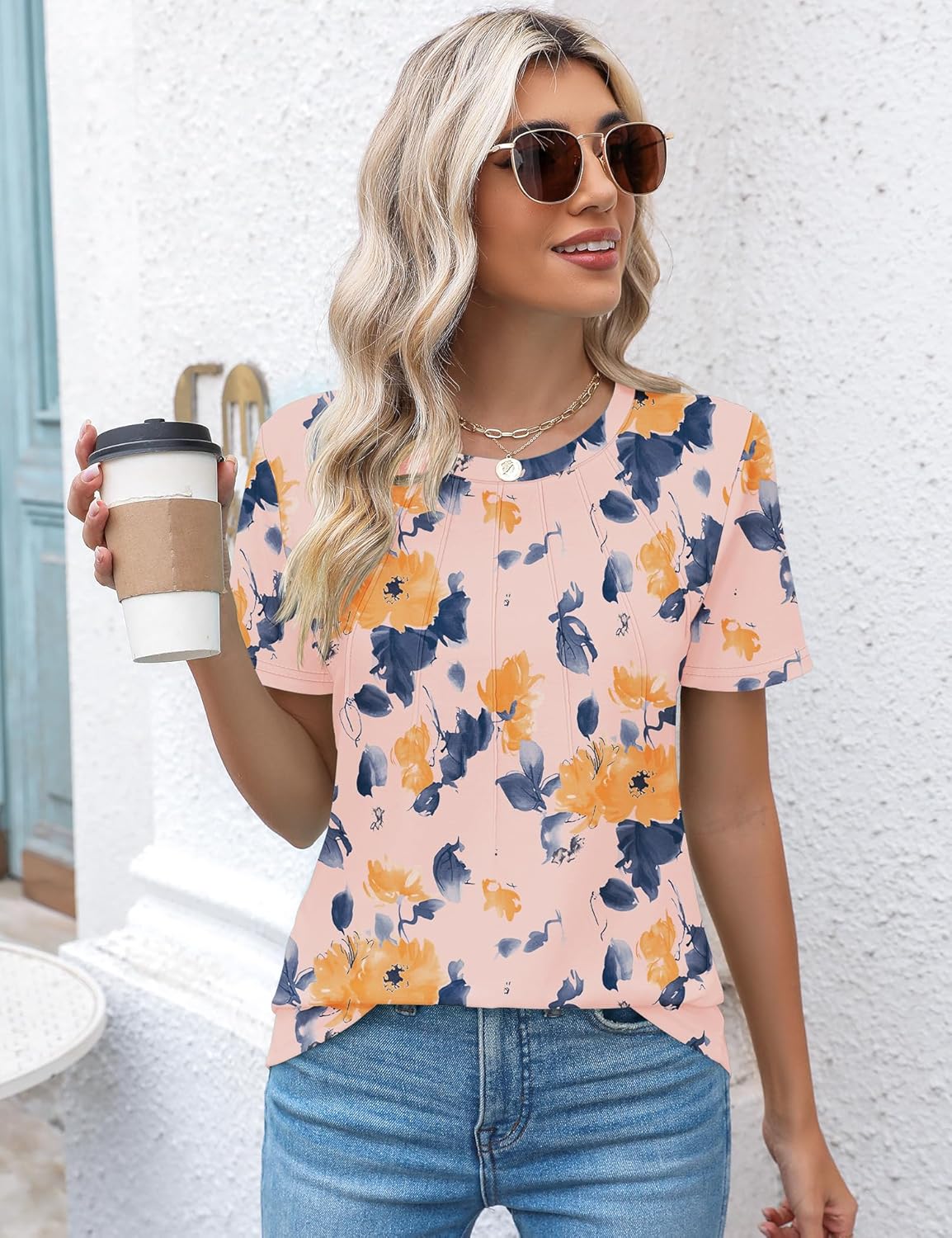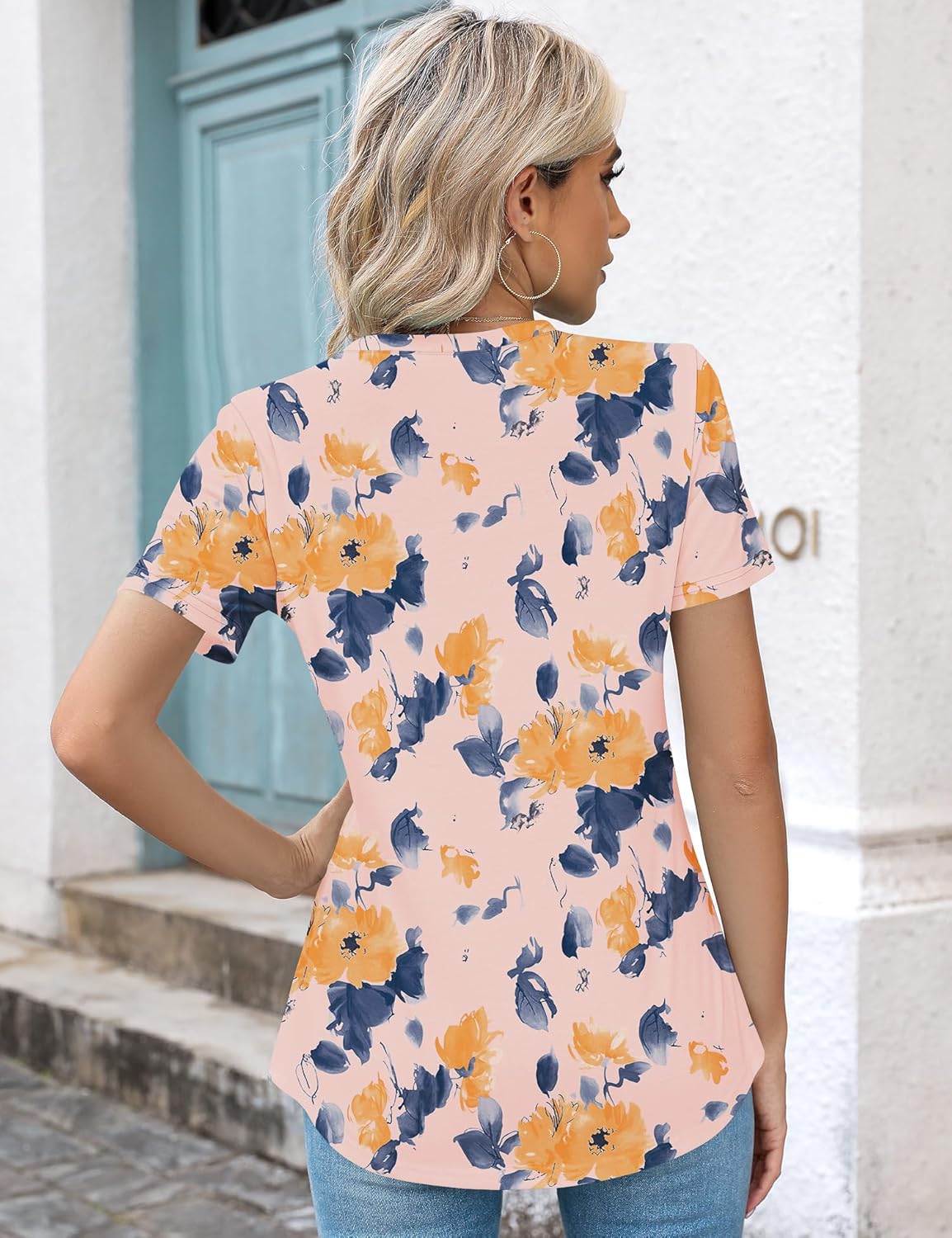 With the cute pin tuck details on the front, which sets this women’s t-shirt apart from the basic tee