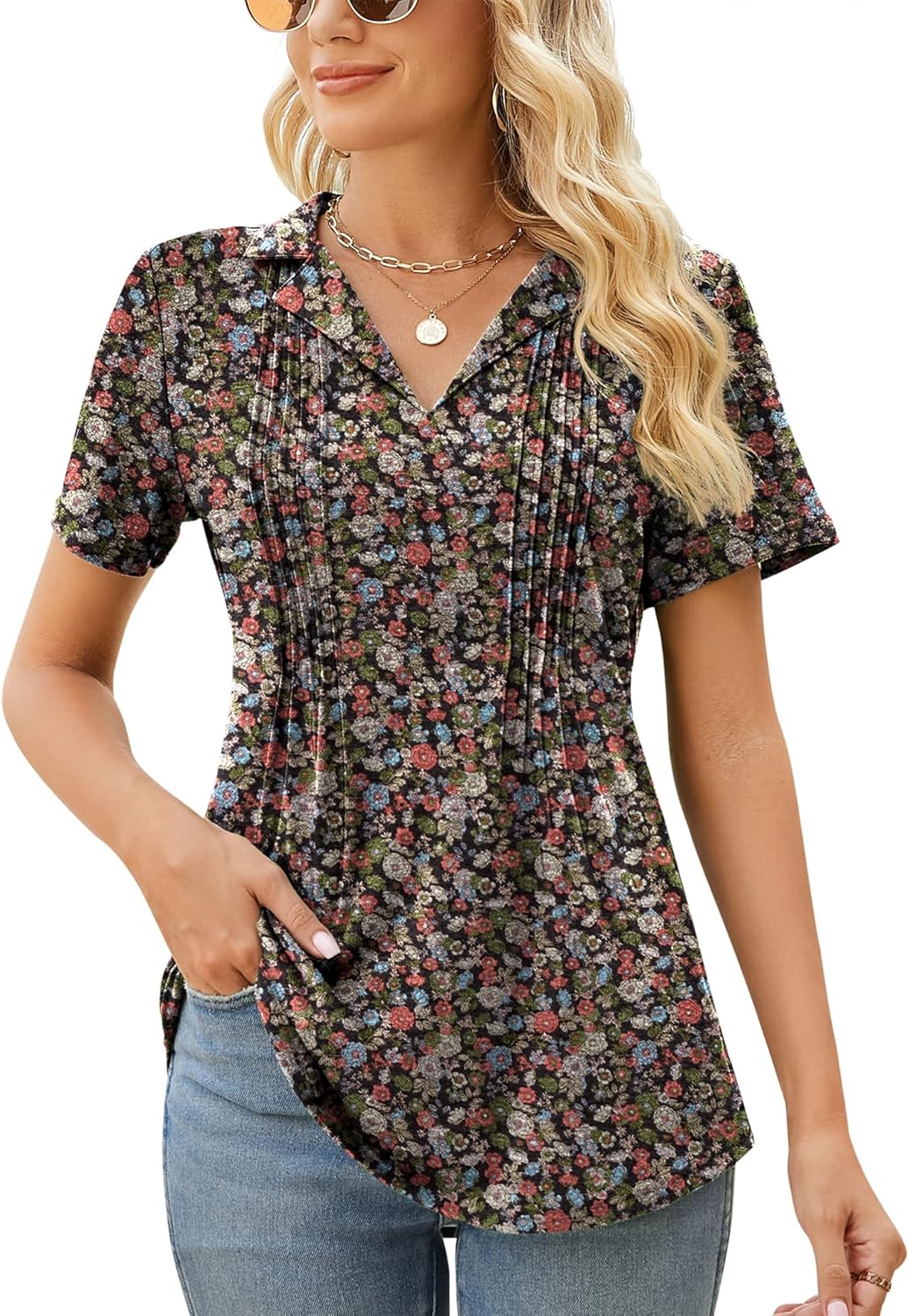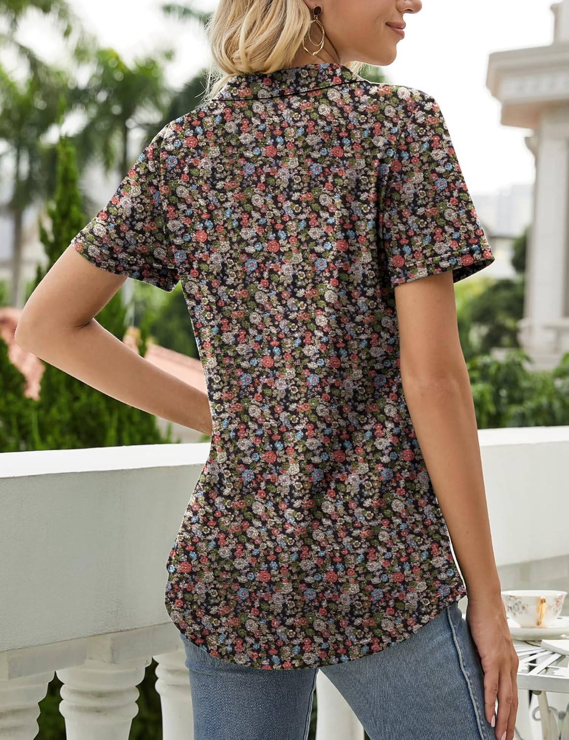 Womens Polo Shirts Floral V Neck Short Sleeve Business Casual Collared Tops Cute Floarl Tops for WomenCute Floarl Tops for Women