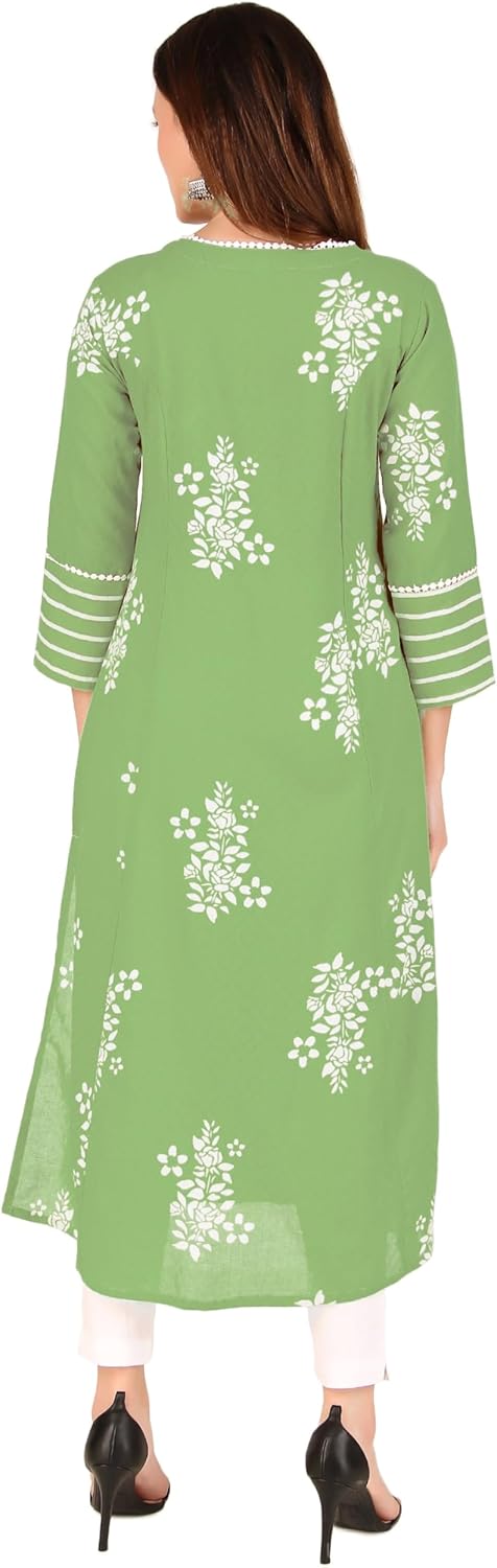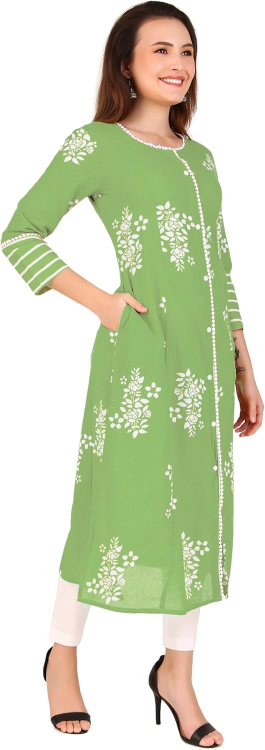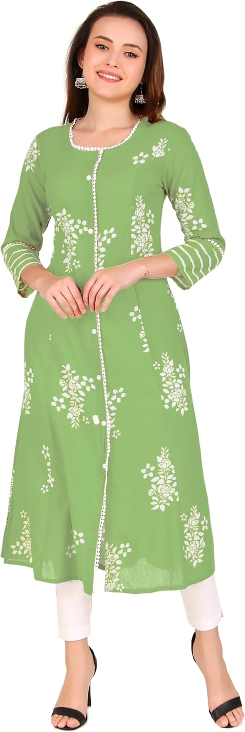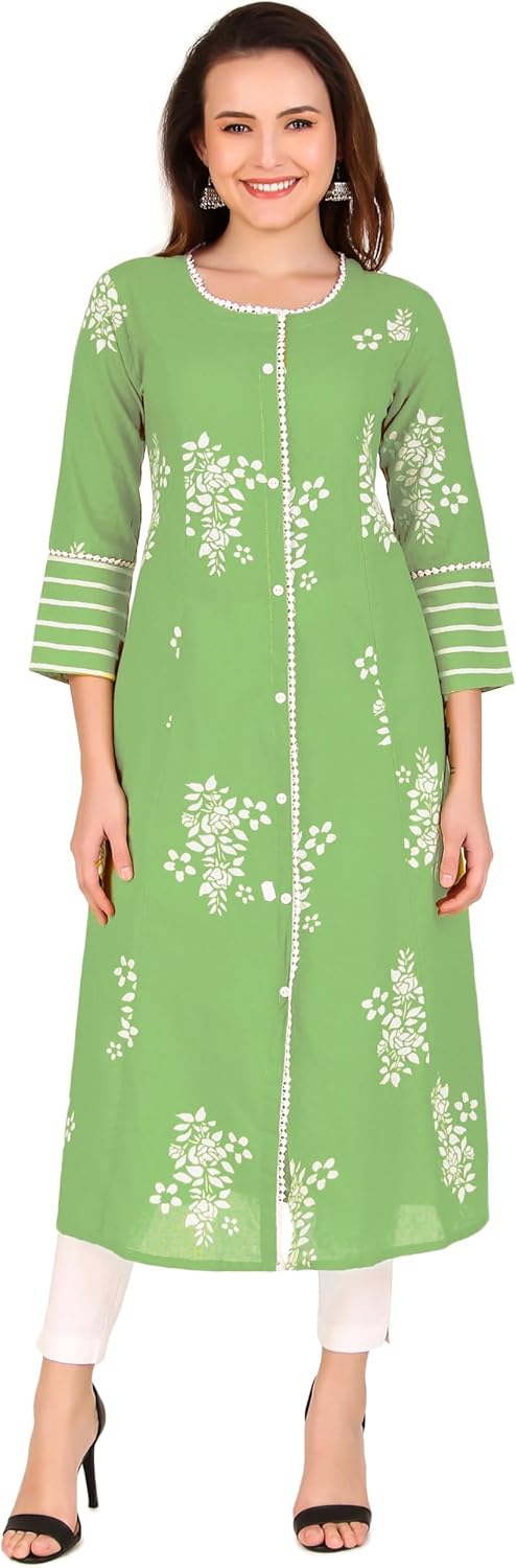 1-Piece Tunic: This includes a single tunic, No bottoms…LENGTH: Top – 45-46 inches; Sleeves – 3/4 Length…TUNIC: Crafted from 100% Cotton self dobby weaving fabric in Princess cut front slit pattern as shown. | One side pocket for utility ..While lace piping at the neckline and front. Show Buttons in front, not openable. ..|Size Chart Guide|: Find the perfect fit with our size options, based on the ready garment measurements of the chest. For more sizing details, please refer to the last product image featuring the Size Chart…
