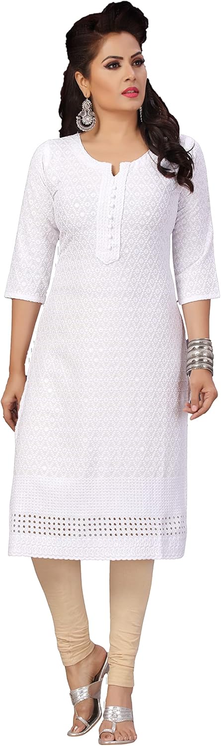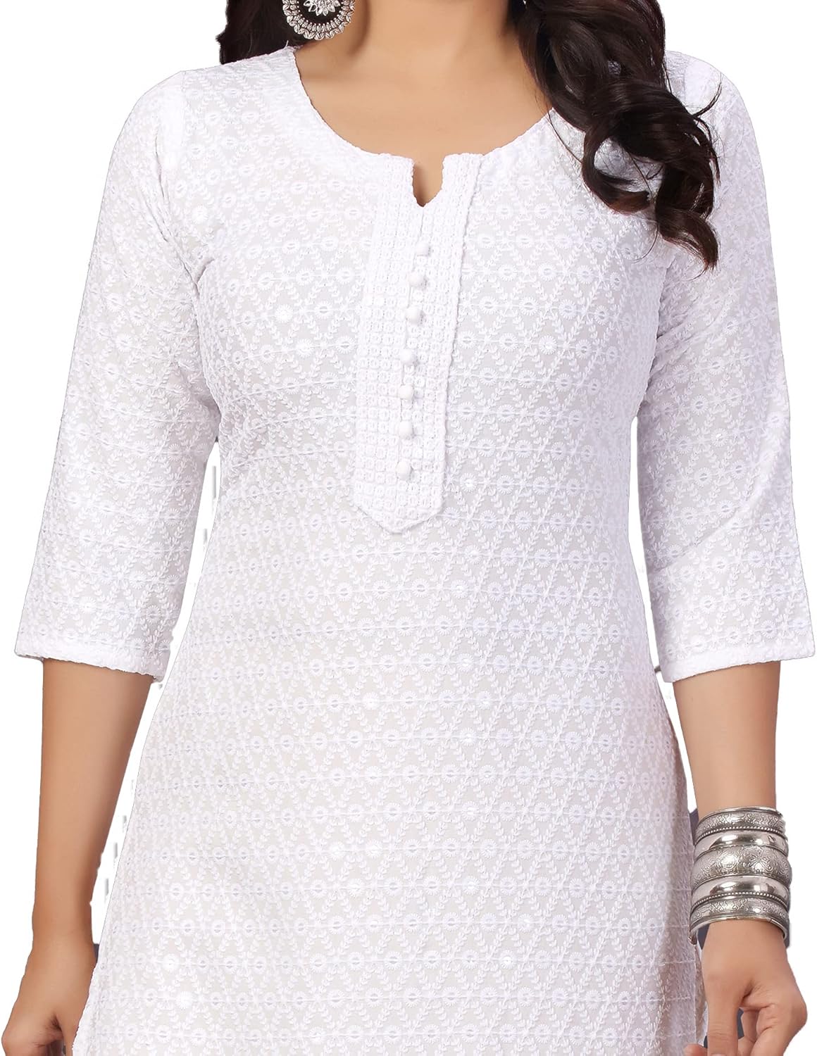 ladyline Rayon Chikankari Tunic Kurta Kurti Top Womens Schiffli Sequins Embroidered