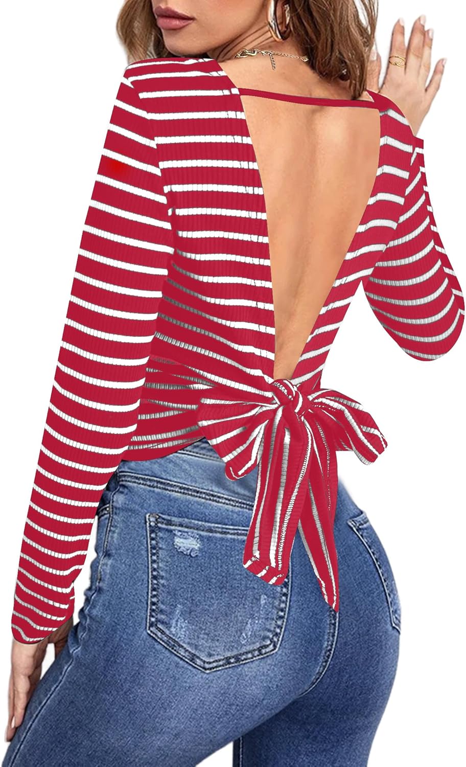 Womens Sexy Backless Tops Open Back Long Sleeve Shirts Cute Clothes