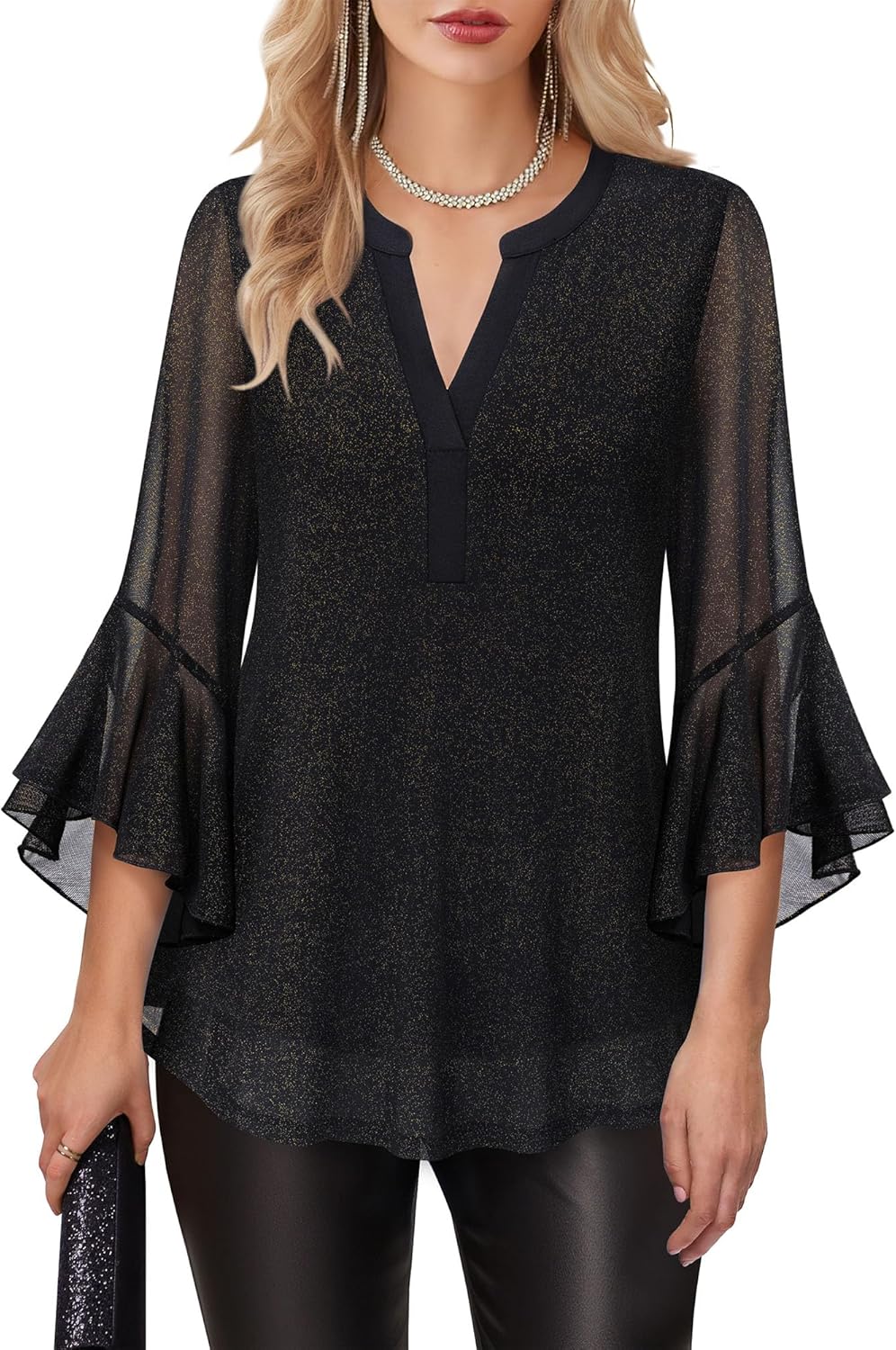 Lotusmile Women’s 3/4 Sleeve Dressy Tops Elegant V Neck Blouse for Women Casual Work Evening Party
