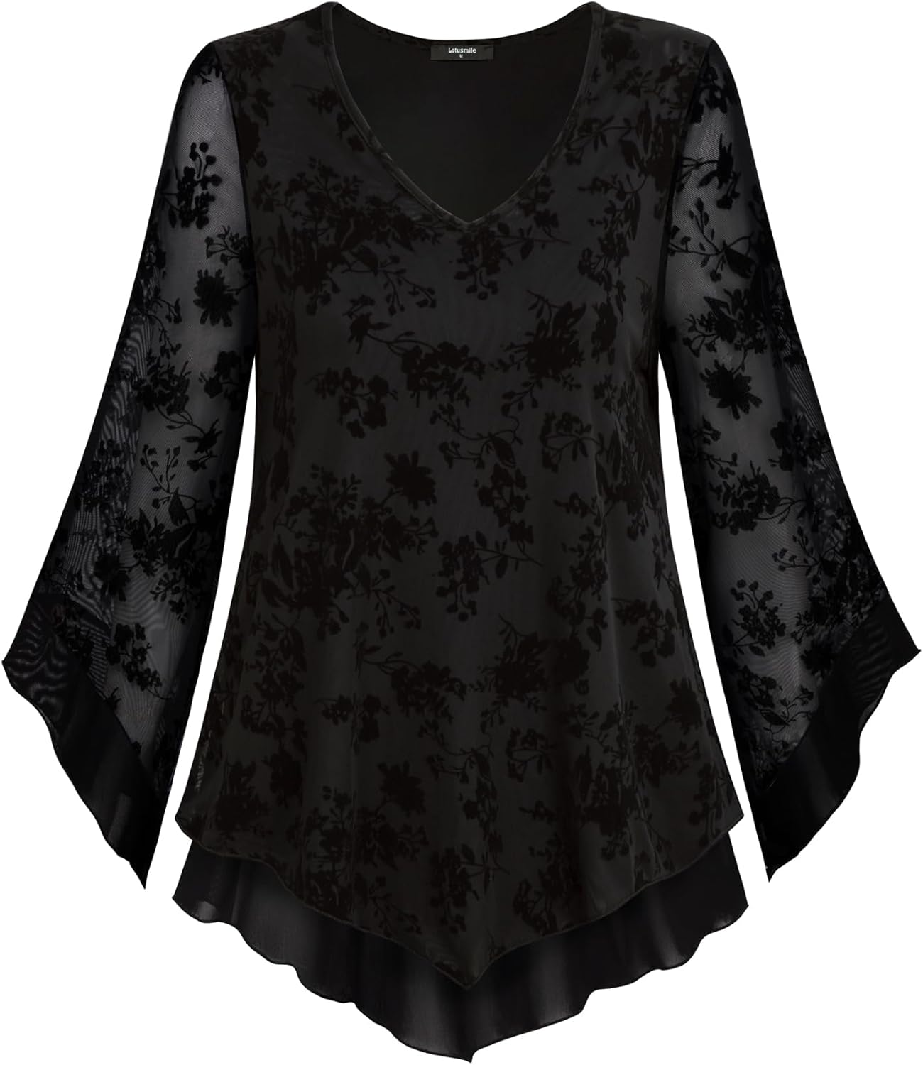 Lotusmile Womens Dressy Blouse Double Layers Mesh 3/4 Flared Sleeve Tunic Tops 2302 dressy casual blouse2302 dressy casual blouse