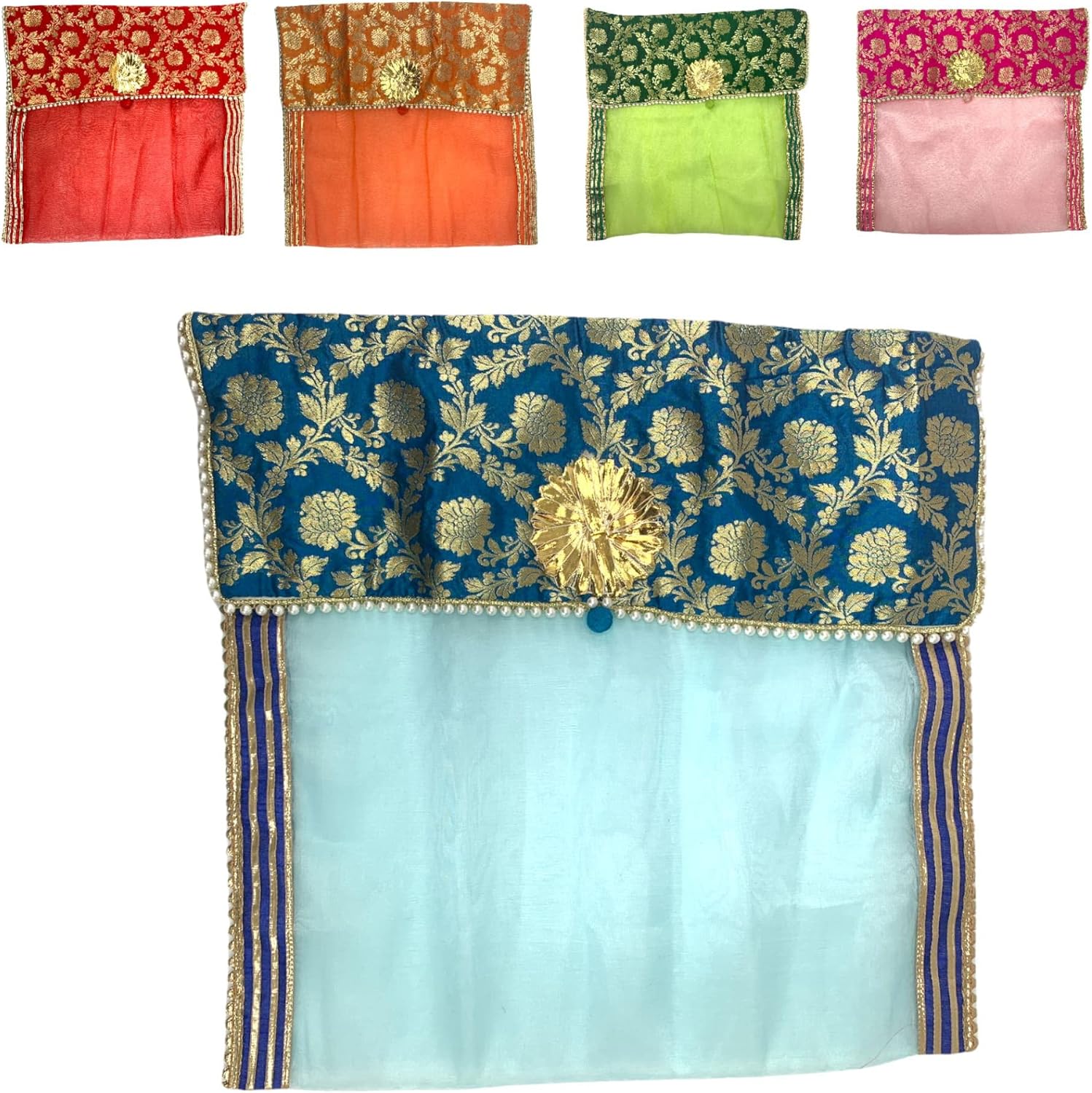 Details Safely store and organize your sarees with the LOVENSPIRE Saree Covers. With a button closure, these covers keep your sarees secure and protected. Use them for wardrobe organization, travel packing, or as elegant wedding favor packaging. Made with high-quality material, these covers are perfect for gifting or personal use.