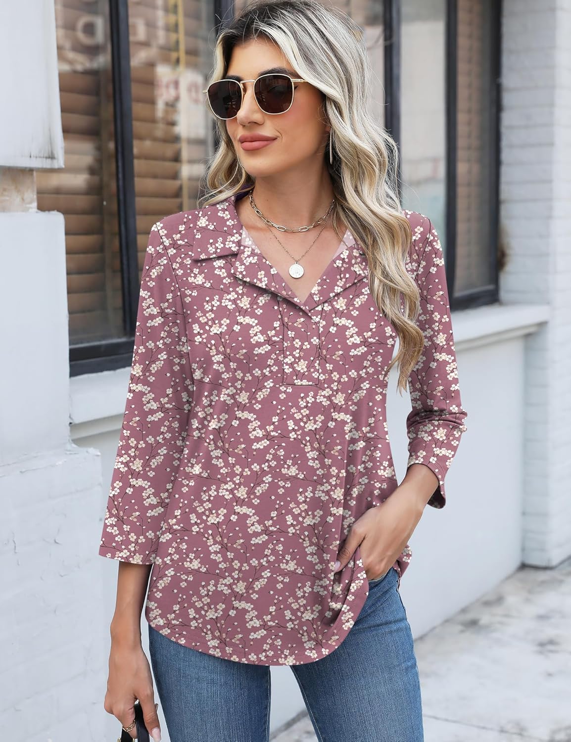 LUYAA Womens Tops 3/4 Sleeve V Neck T Shirt