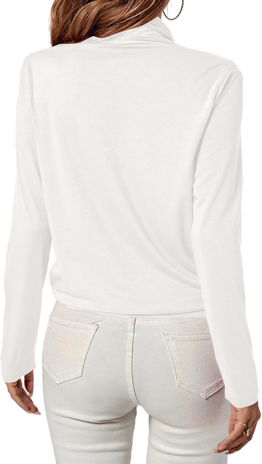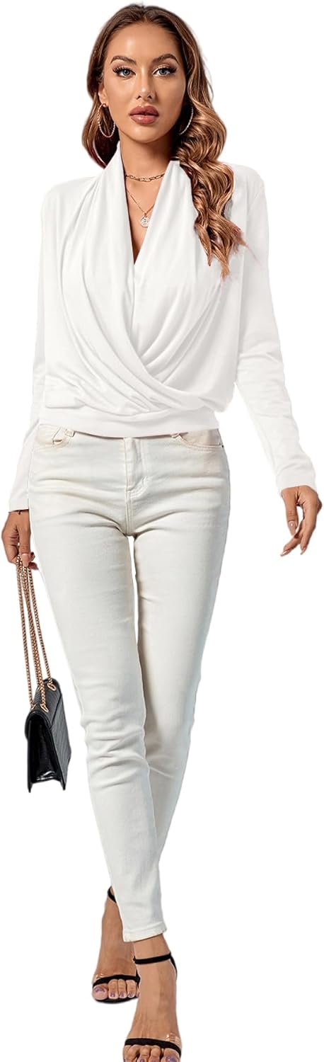 LYANER Women’s Casual V Neck Cross Wrap Long Sleeve Solid Blouse Shirt Top