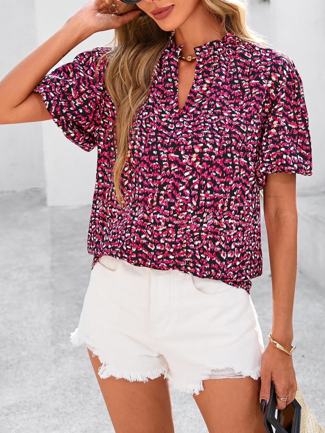 The V-neck and puff sleeves lend a feminine charm to this versatile dressy tops for women trendy, making it suitable for both casual and formal occasions.Whether you’re heading to work, meeting friends for lunch, or attending a special event, this summer blouses will leave a lasting impression.