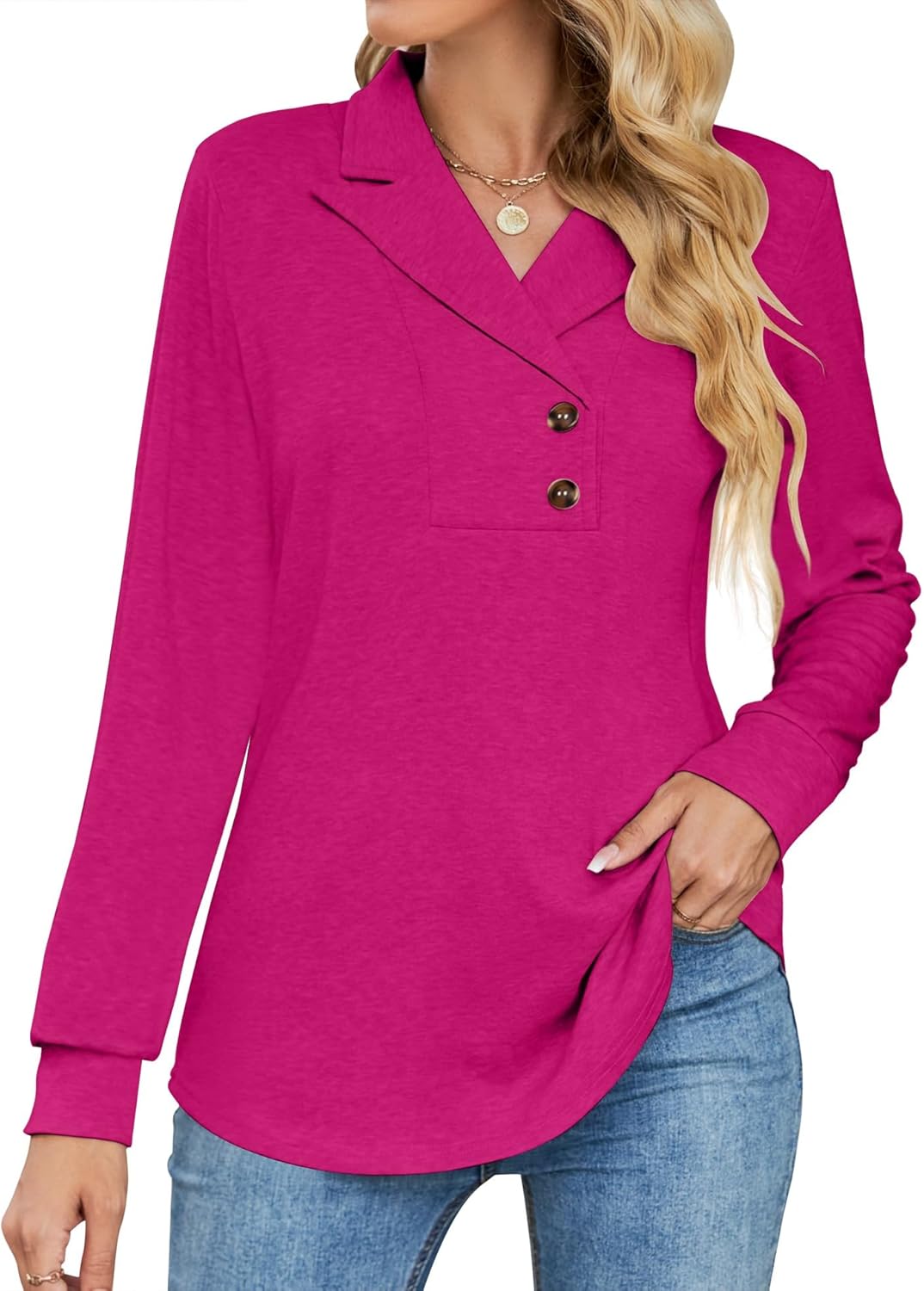 Micoson Women’s Long Sleeve Button Lapel Tunic Tops V Neck Swing Sweatshirt