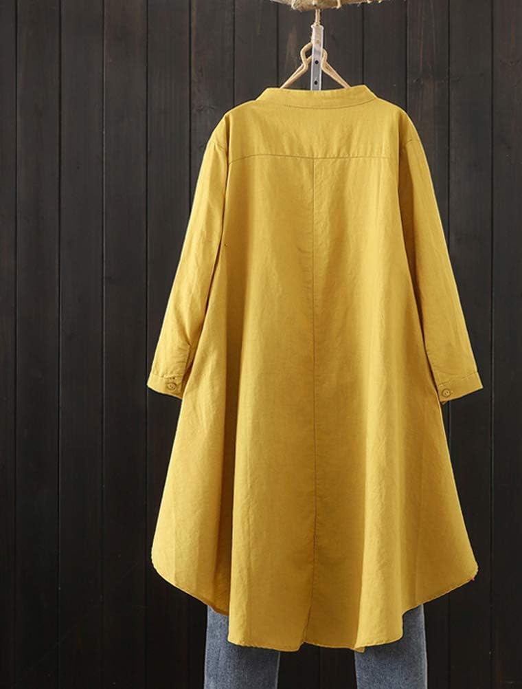 Women’s Cotton Linen Shirt Embroidered Blouse Long Sleeve Tunic Tops