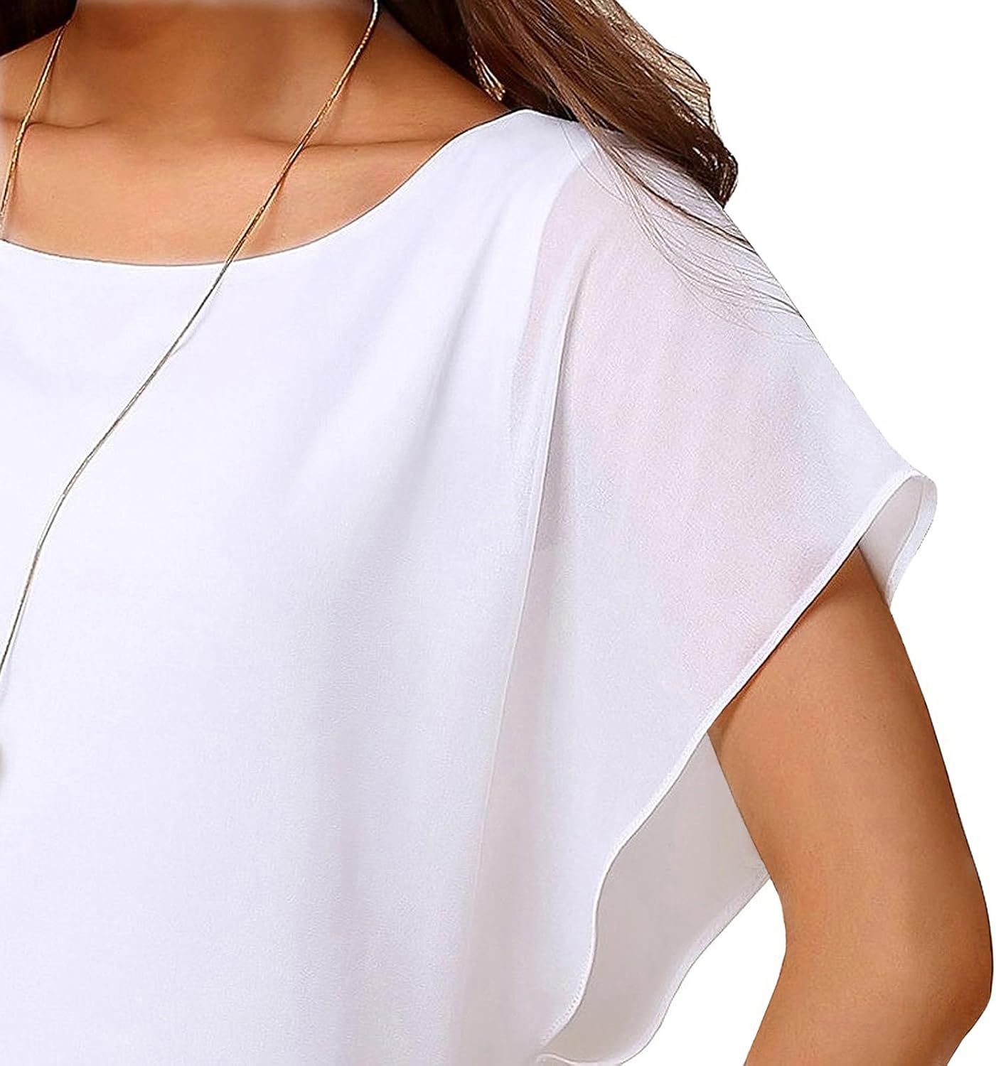 Neineiwu Women Casual Round Neck Batwing Chiffon T-shirts Elegant Tops Blouse