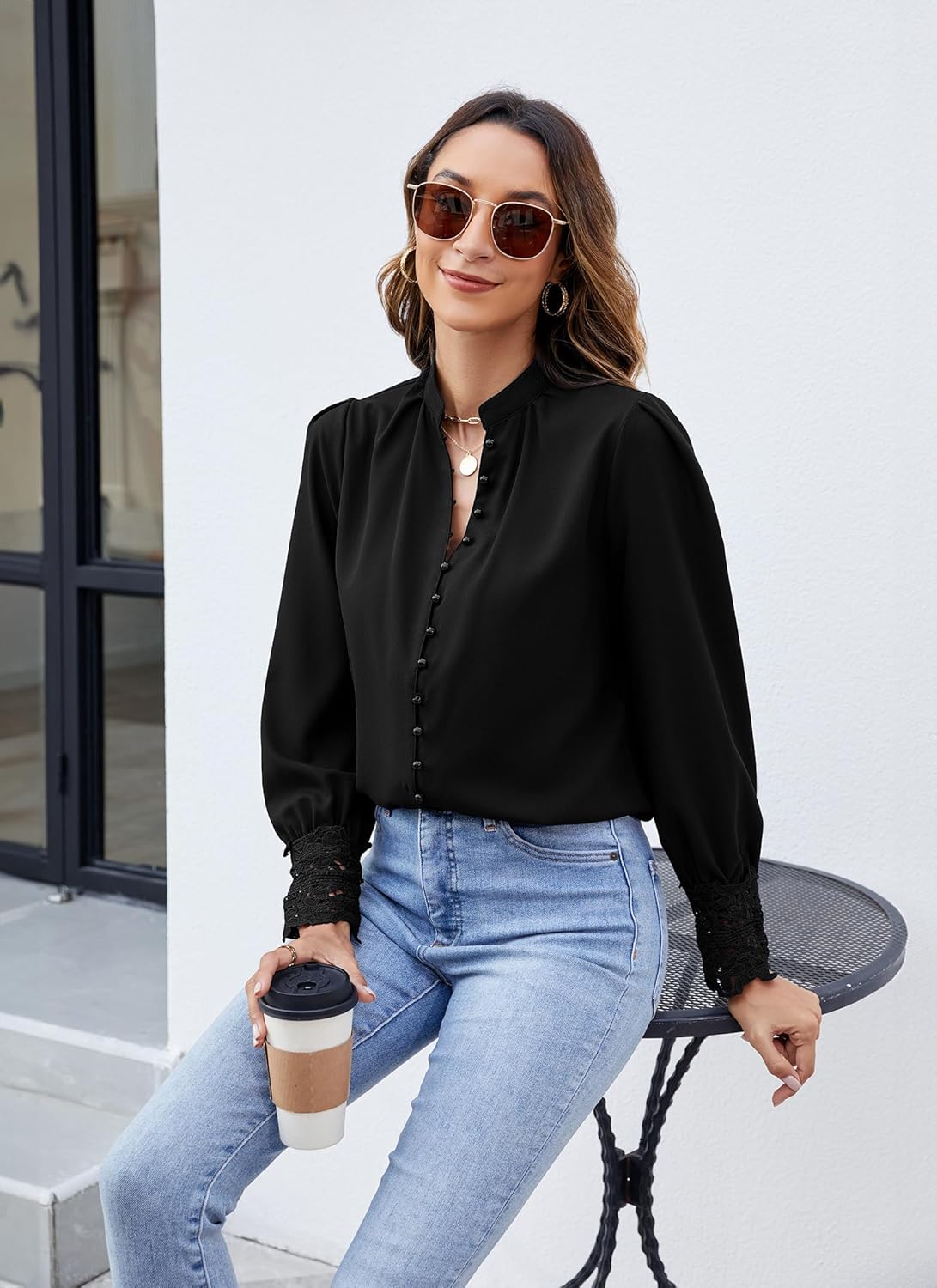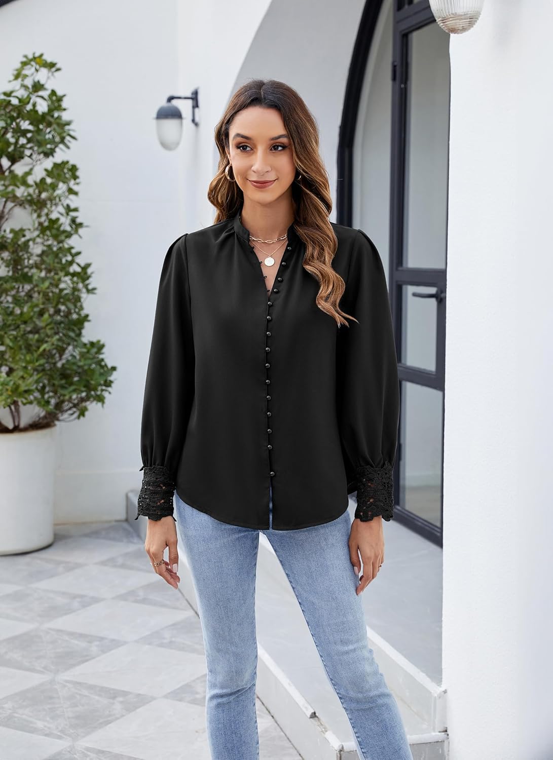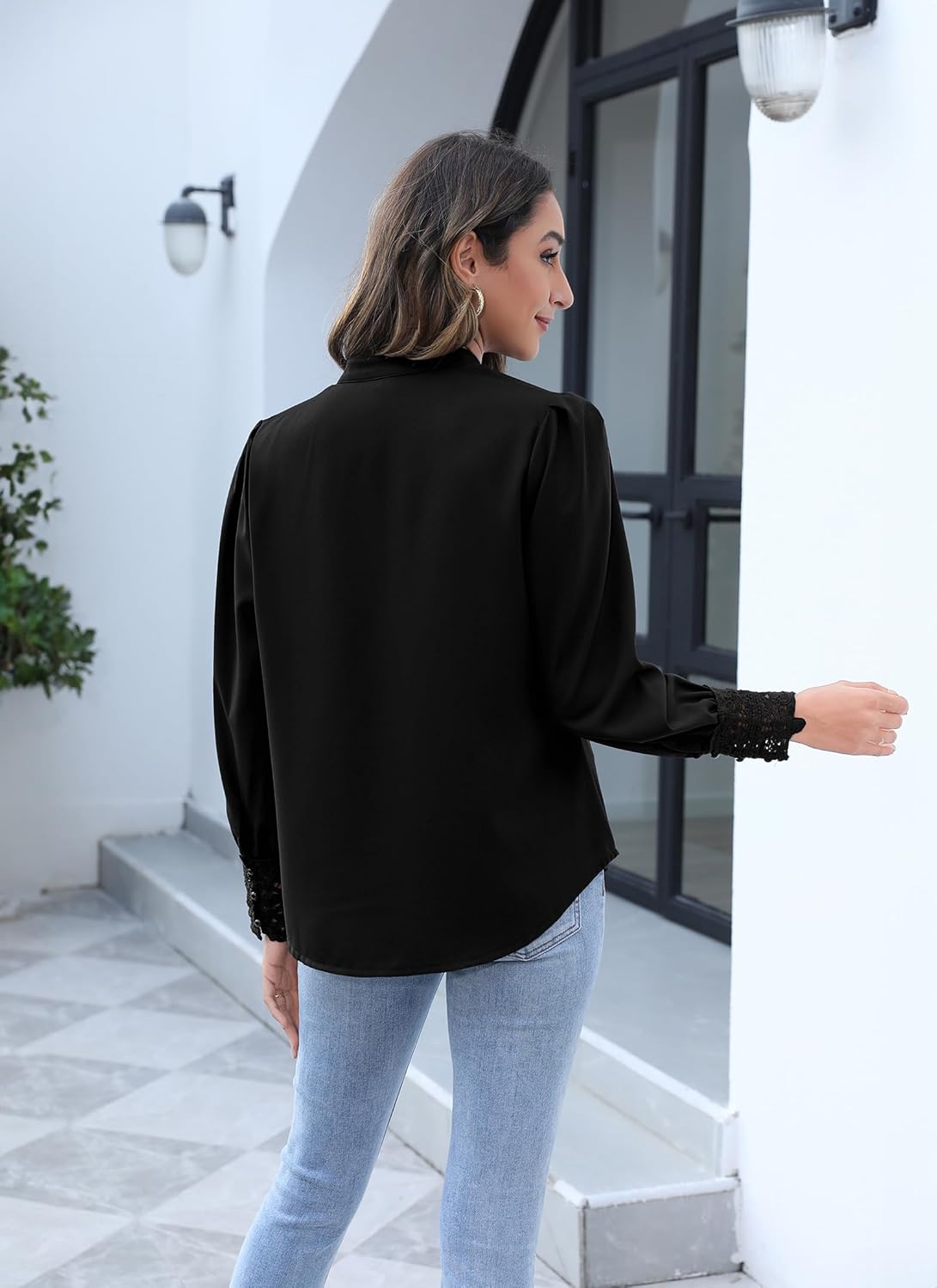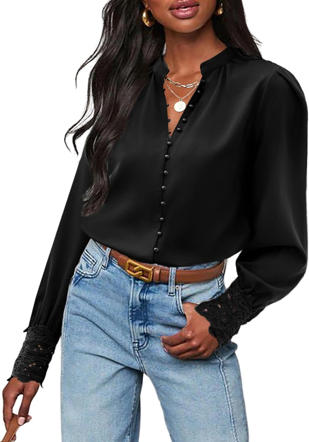 Womens Lace Cuff Blouses Tops