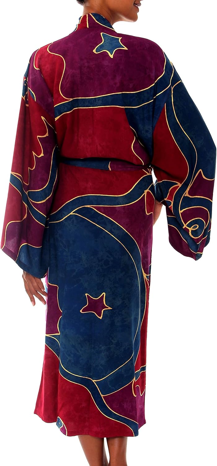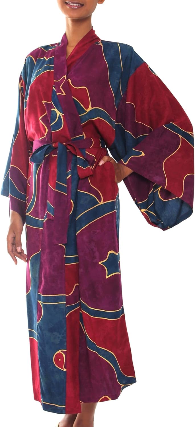 NOVICA Artisan made Women’s Handpainted Batik Patterned Long Robe from Indonesia