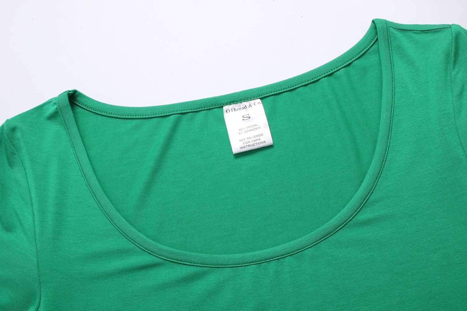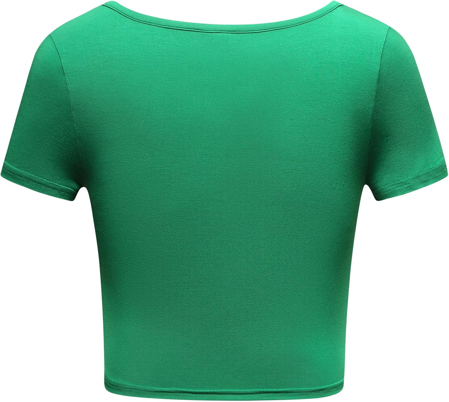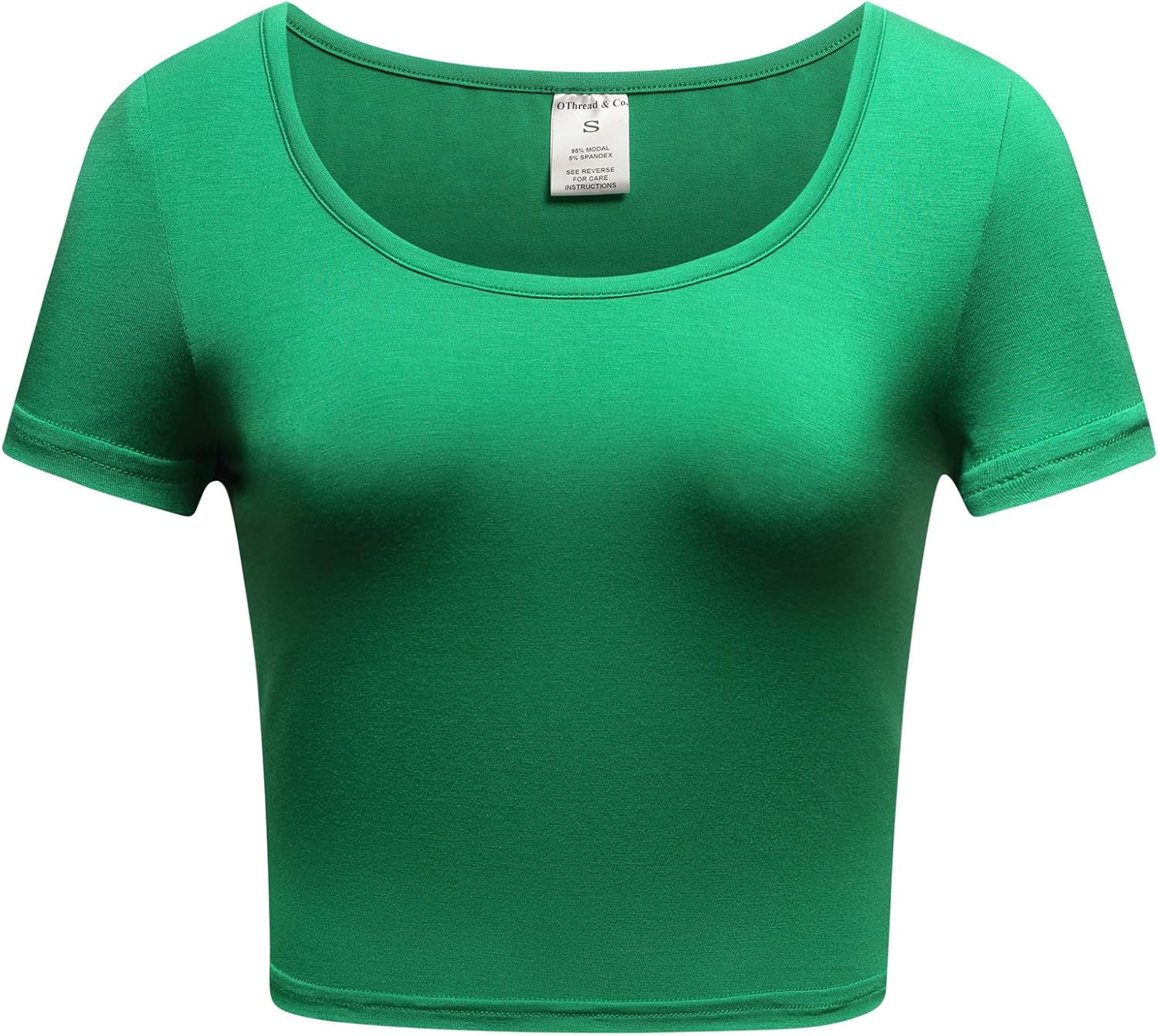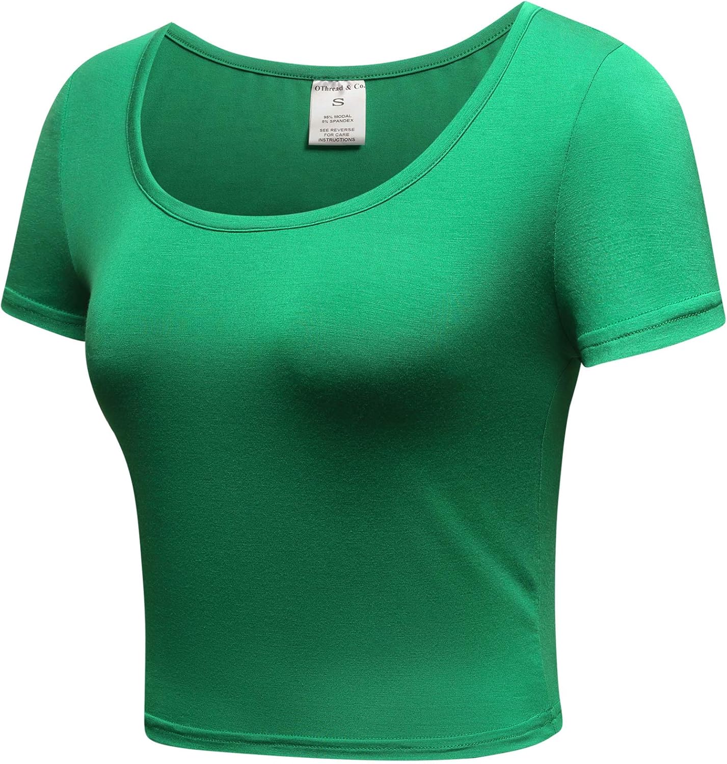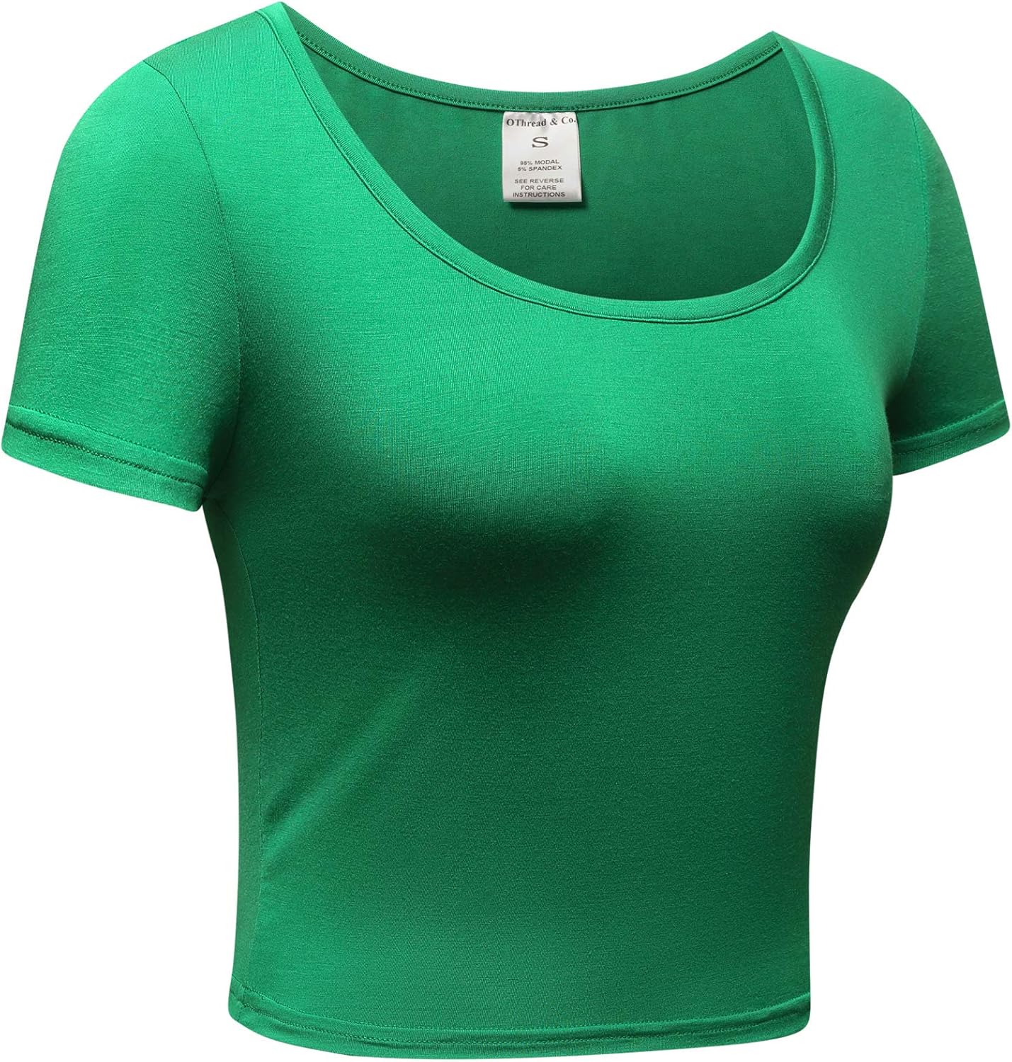 OThread & Co. Women’s Basic Crop Tops Stretchy Casual Scoop Neck Cap Sleeve Shirt