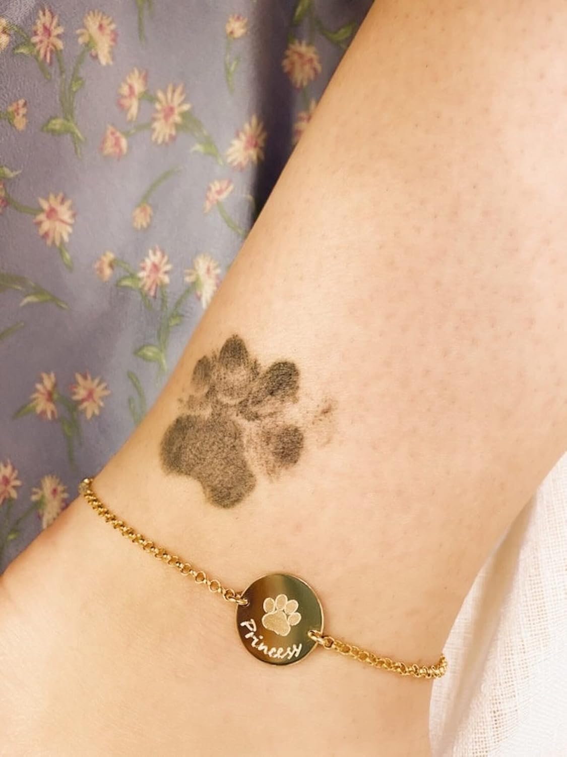 ~ELEGANT DESIGN~ Each anklet features a centered paw print engraving and the name of a pet curving elegantly underneath in one of our gorgeous font options. The front and back of this lovely disc anklet can be engraved!