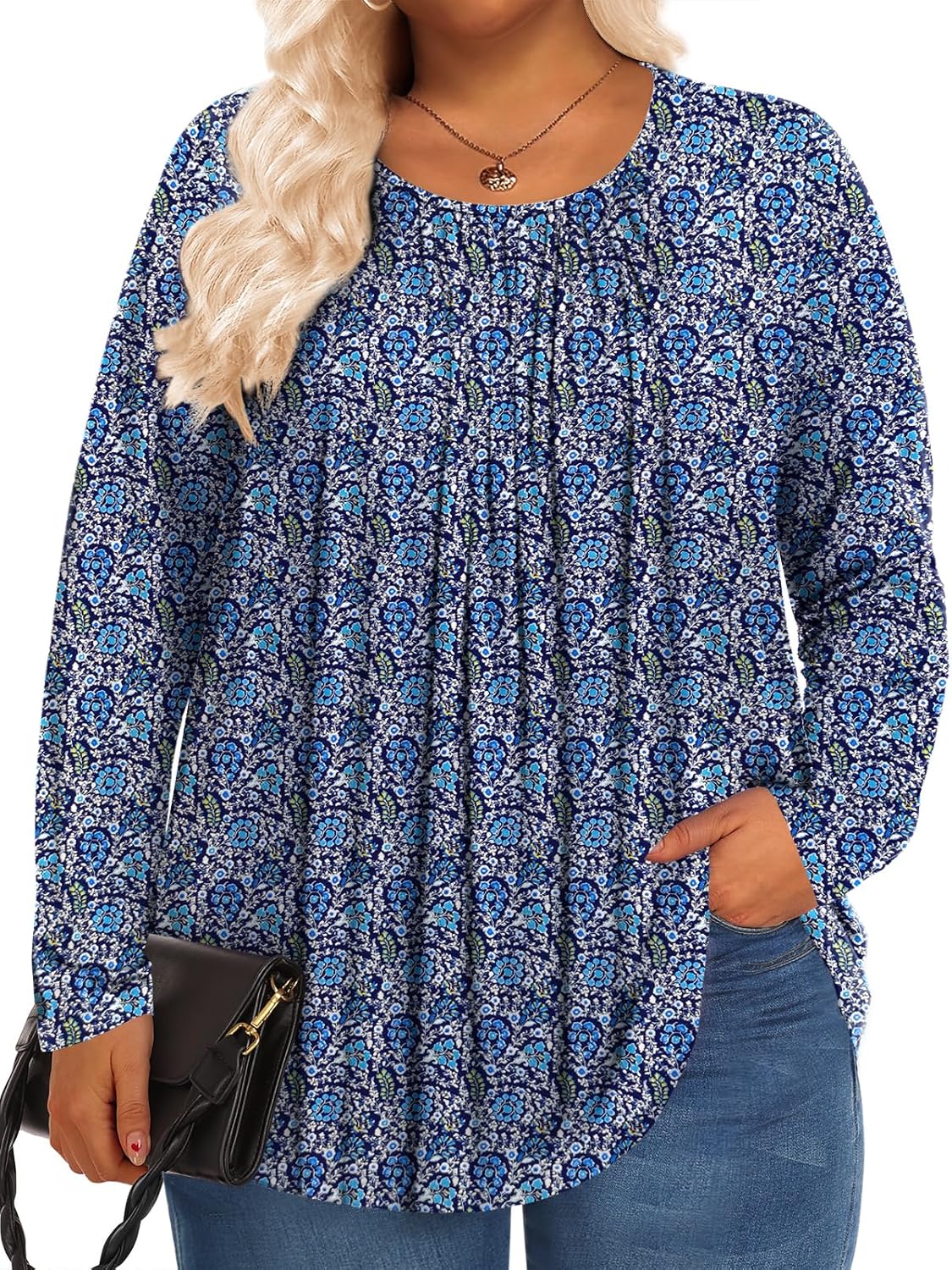Plus Size Tops for Women Long Sleeve Shirts Fall Tunic Loose Fit Dressy Casual Blouse 1X-5X