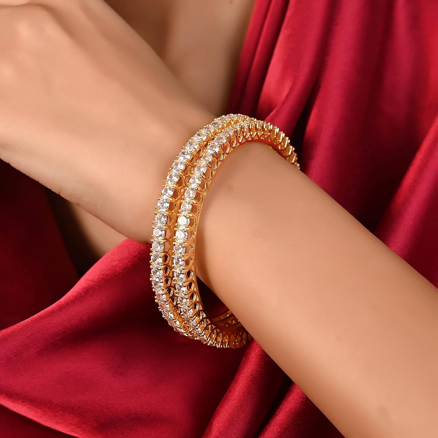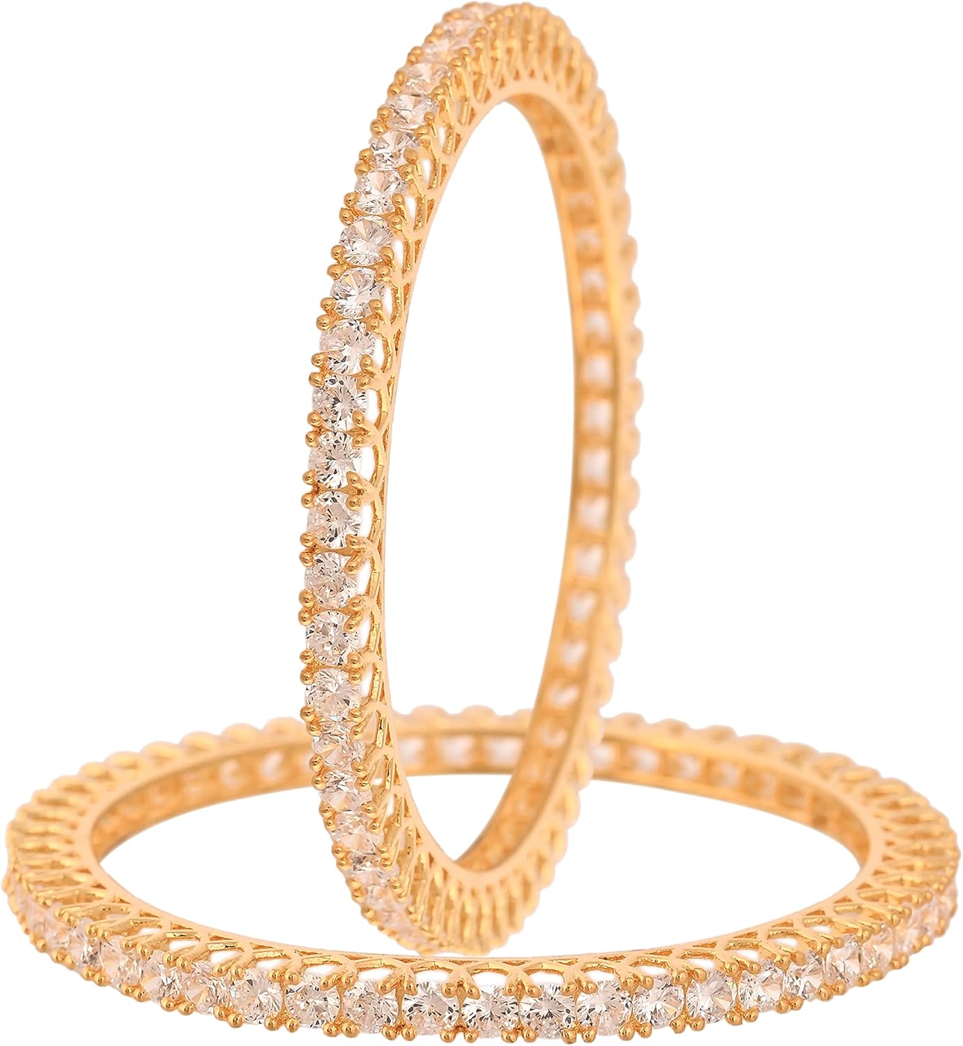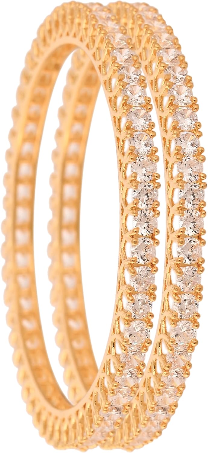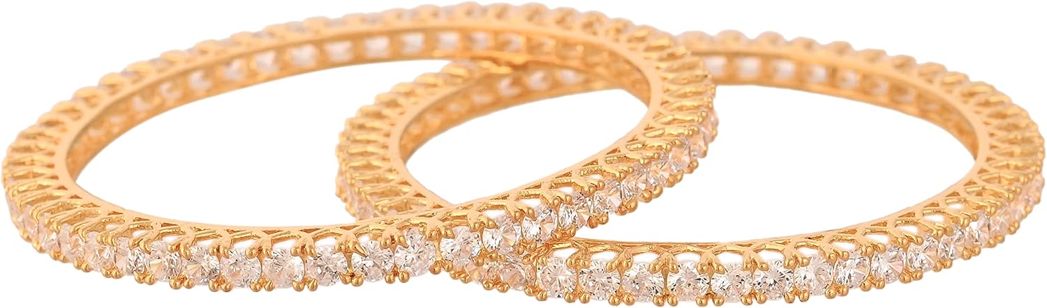 Ratnavali Jewels Gold Tone White CZ Zirconia Diamond Bollywood Wedding Indian Bangles Jewelry Women