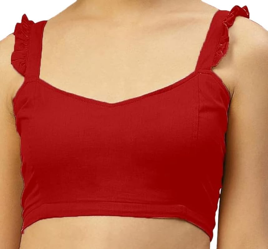 Readymade Cotton Saree Blouse: This indicates that the blouse is pre-made and ready to wear, saving time and effort in customization.Indian Women Stylist Top: The blouse is designed in a stylish manner suitable for Indian women, suggesting it incorporates contemporary trends or elements popular in Indian fashion.Bollywood Sari Choli: The mention of Bollywood and Sari Choli suggests that the blouse is inspired by Bollywood fashion and specifically tailored to be worn with a saree.Round Neck: The blouse features a round neckline, which is a classic and versatile design that suits various face shapes.Sleeveless: The blouse lacks sleeves, offering a modern and chic look while allowing freedom of movement.Back Open: The back of the blouse is open, adding a contemporary and stylish touch to the traditional garment. This back open design can vary in extent, contributing to the overall aesthetic of the blouse.Overall, this readymade cotton saree blouse blends traditional elements with modern fashion trends, making it suitable for women who appreciate both classic elegance and contemporary style in their ethnic attire.