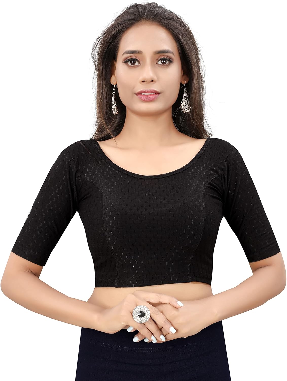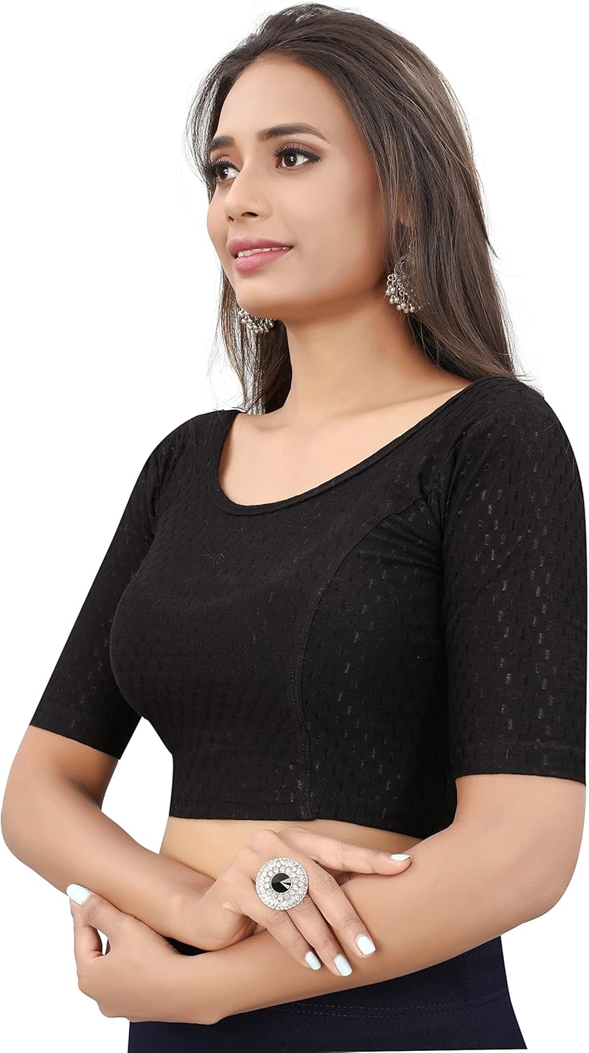 Readymade Stretchable Blouse for Women | Stylish Round neck Dobby Cotton Lycra Elbow Sleeve Party wear choli