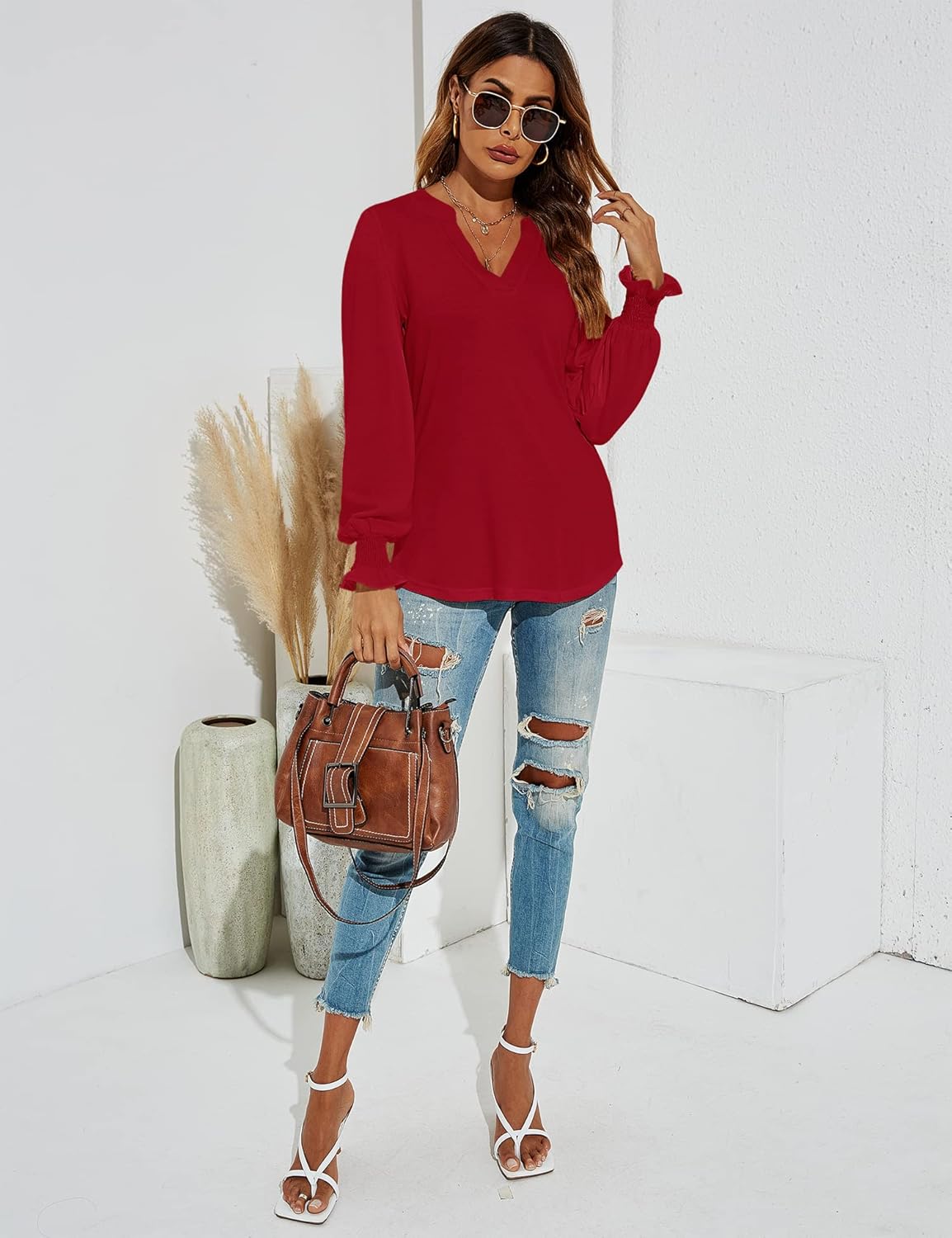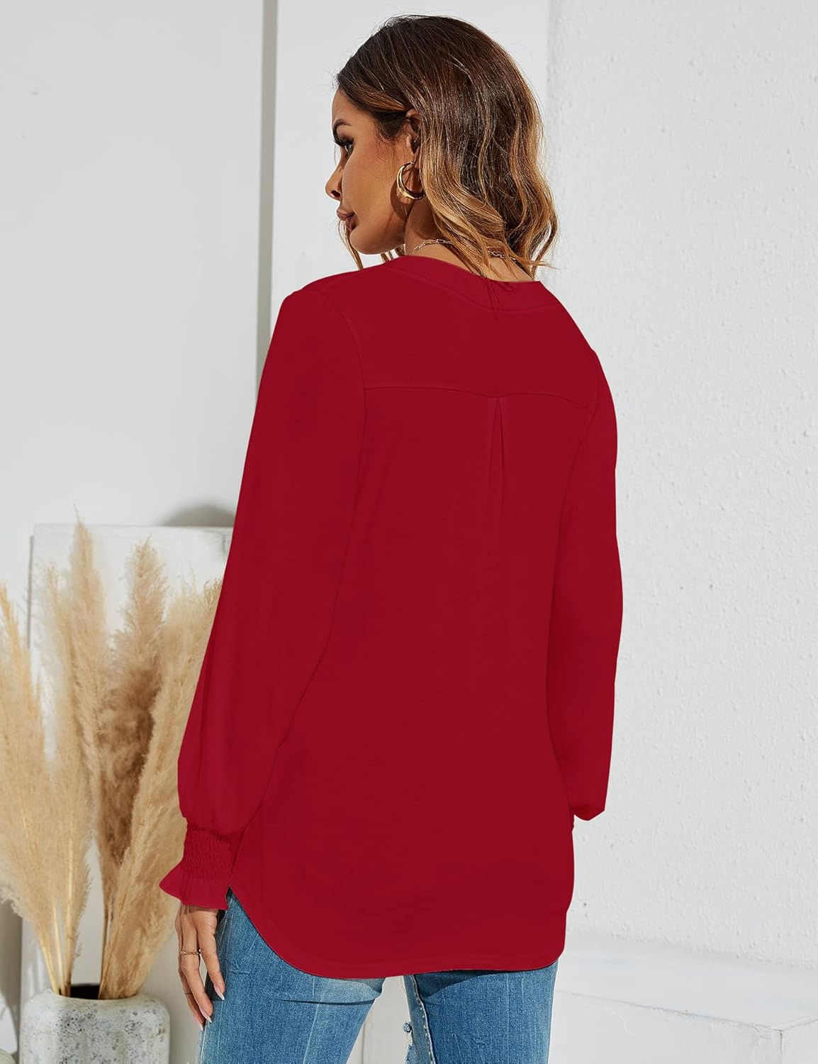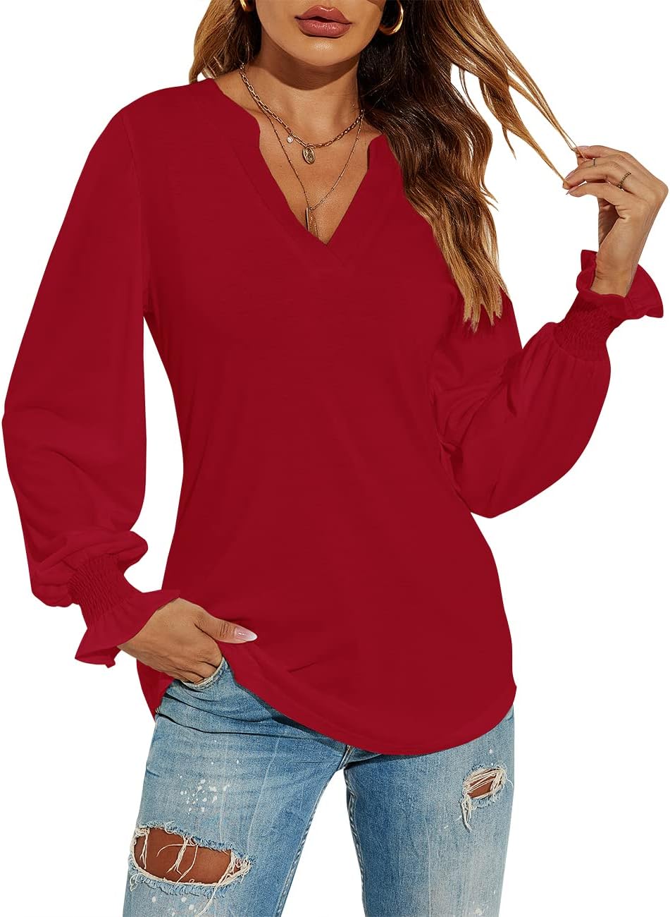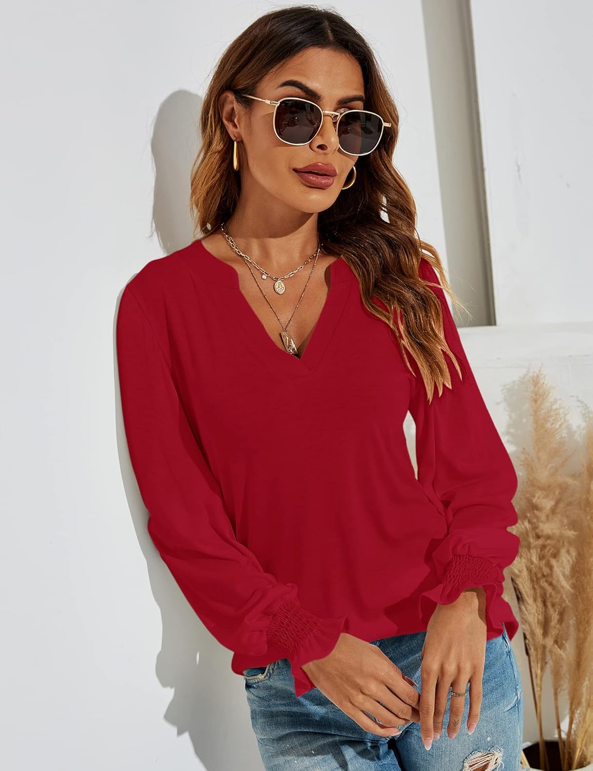 Romanstii Women’s Dressy Casual V-neck Long Sleeve Tops