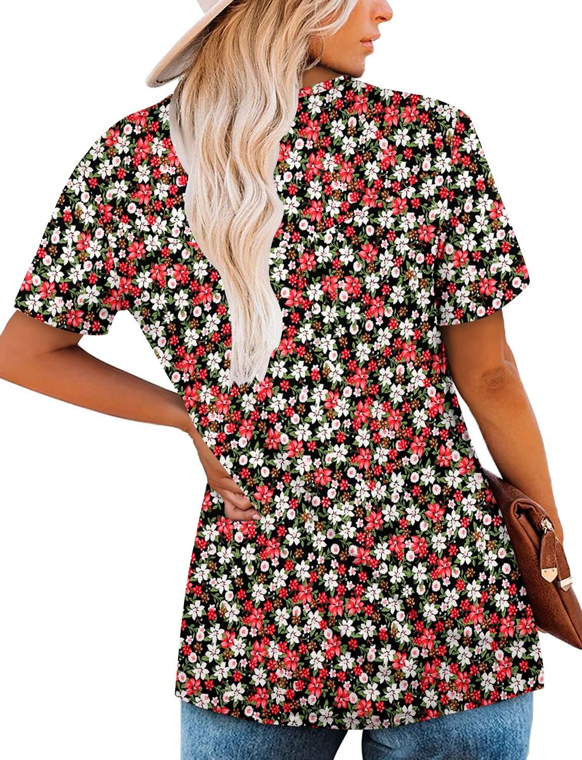 ROSELINLIN Women’s Short Sleeve Shirts Floral Summer Tops Loose Fit for Leggings