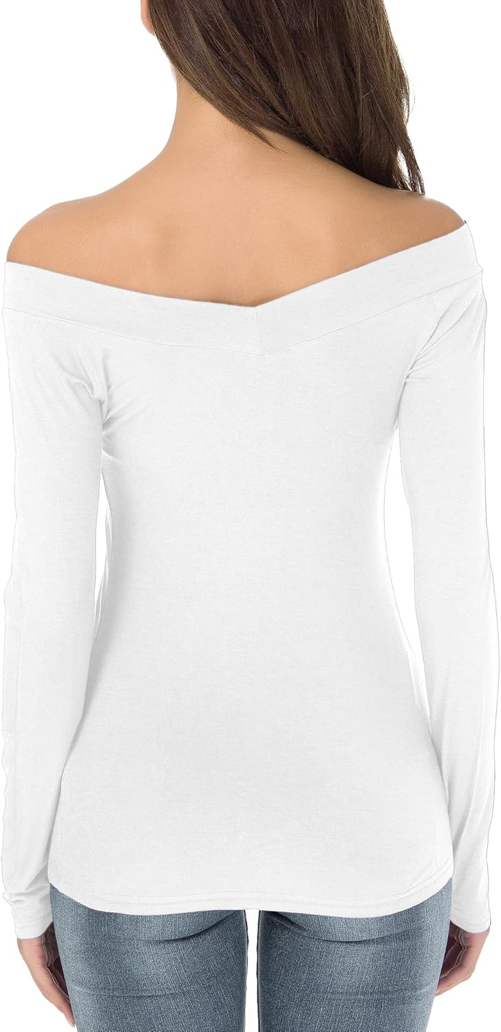 Sarin Mathews Womens Off The Shoulder Sexy V Neck Tops Slim Fit Shirts
