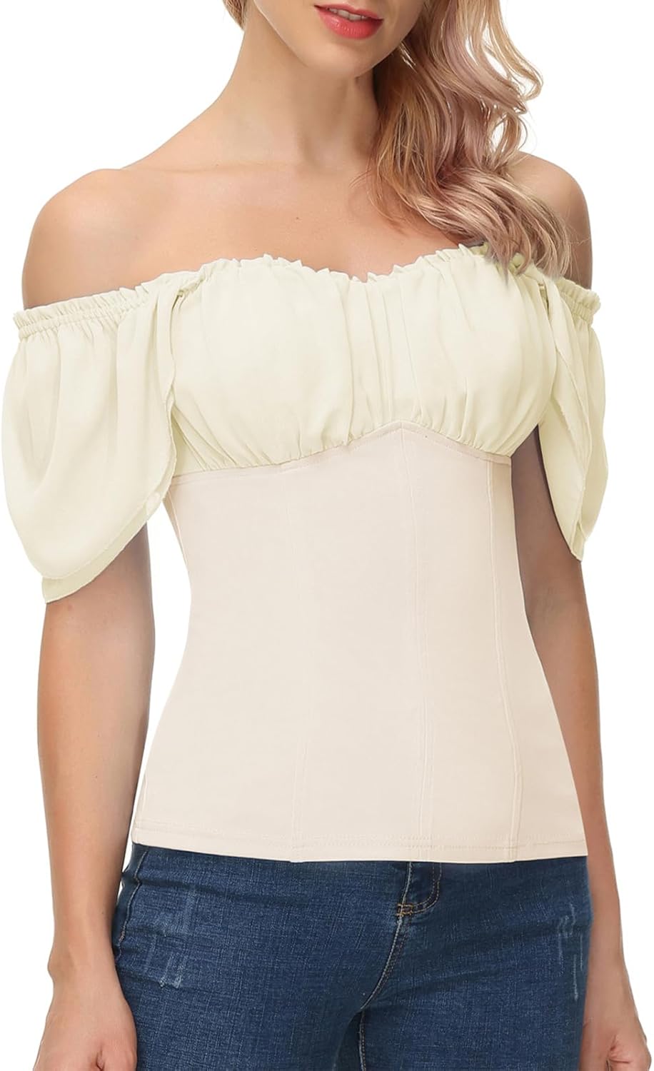 Scarlet Darkness Women Renaissance Shirt Off Shoulder Flutter Short Sleeve Top Summer Square Neck Peasant Blouse