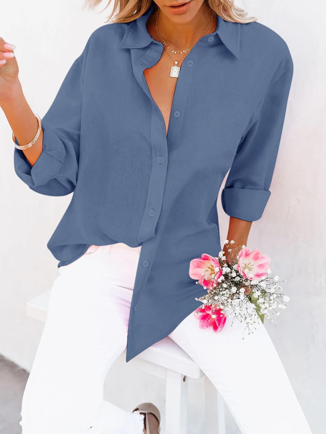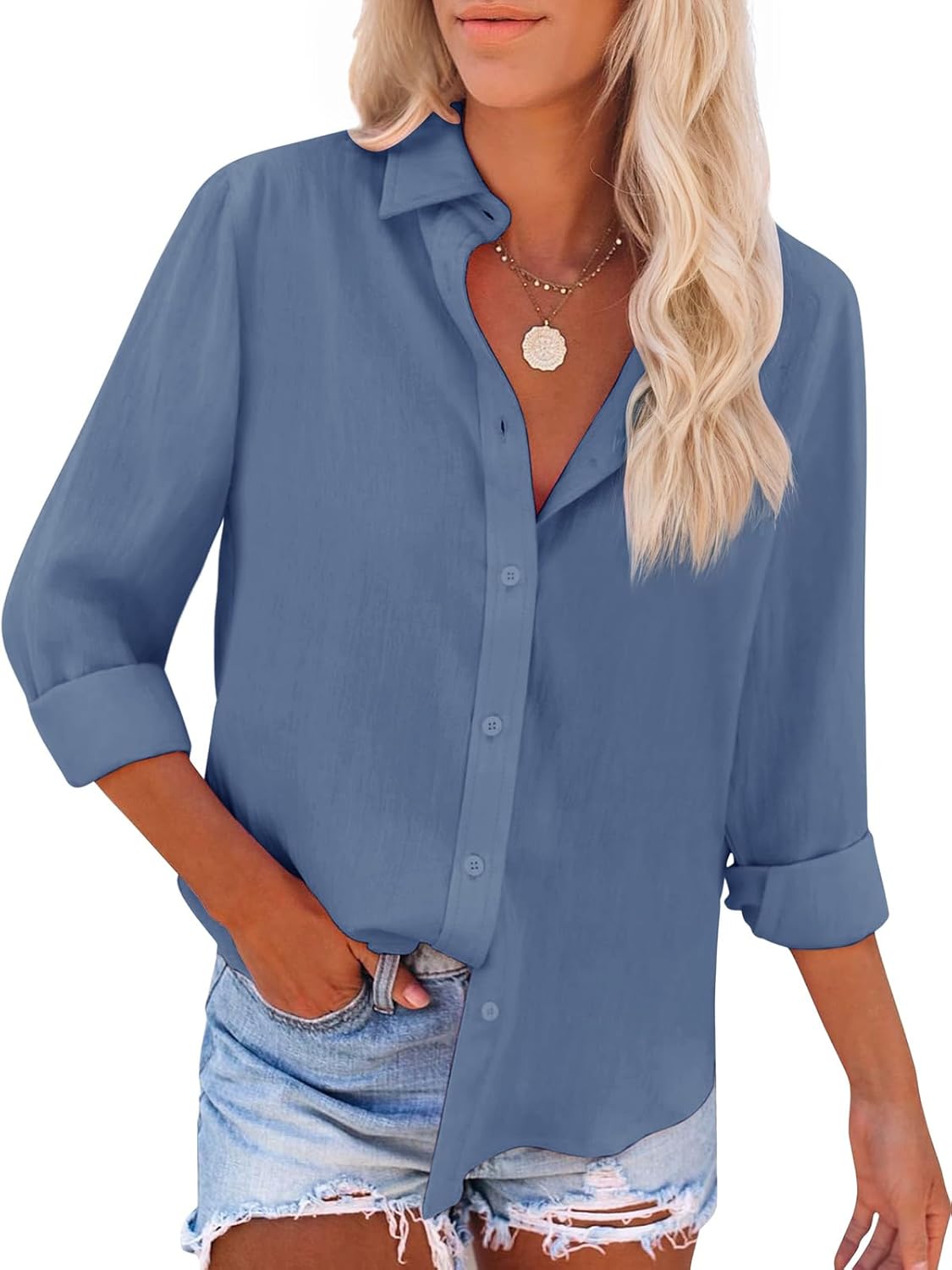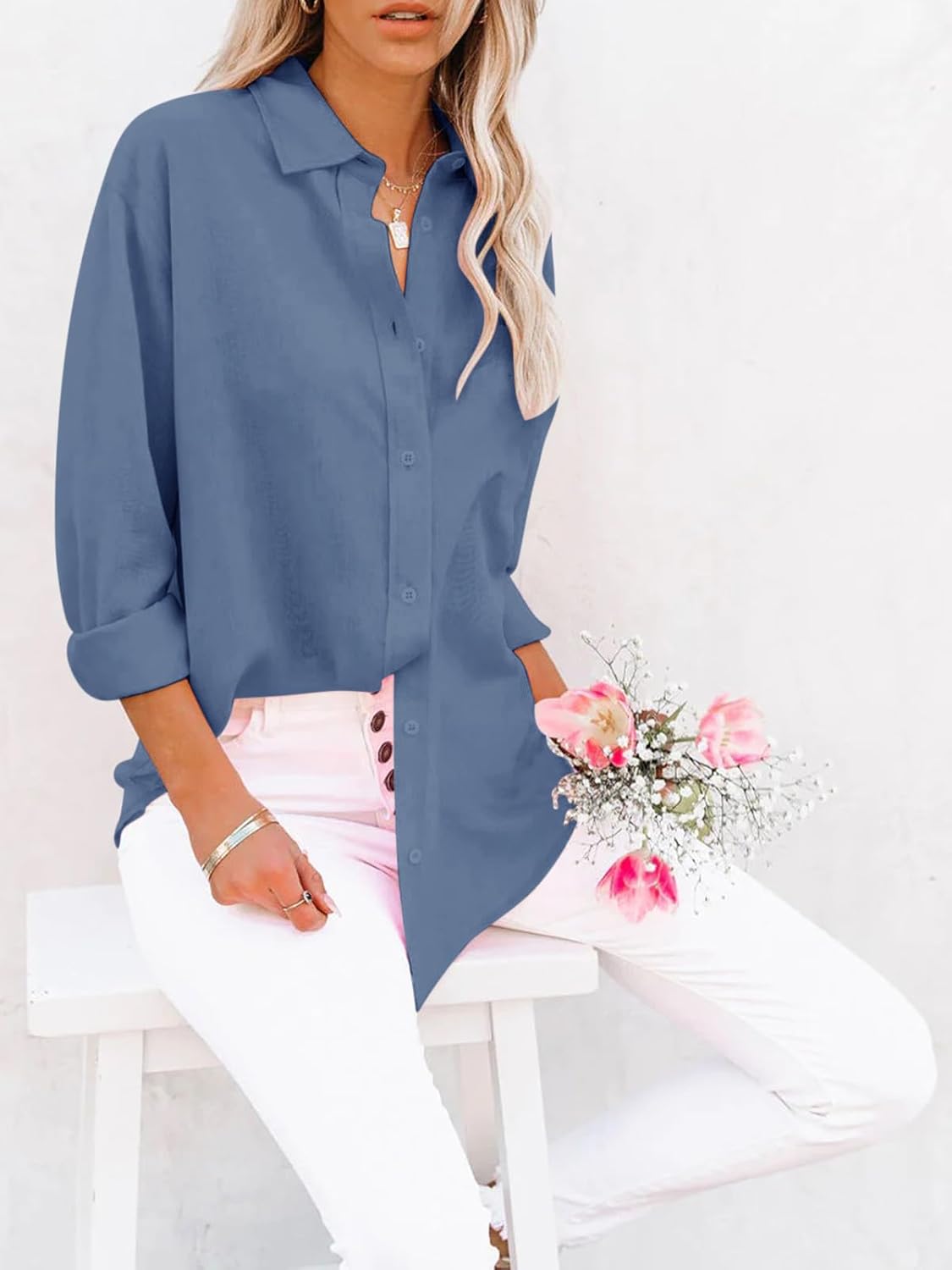 Soft Cotton Blend Button Up Shirts For Women Casual Dressy Trendy Fashion