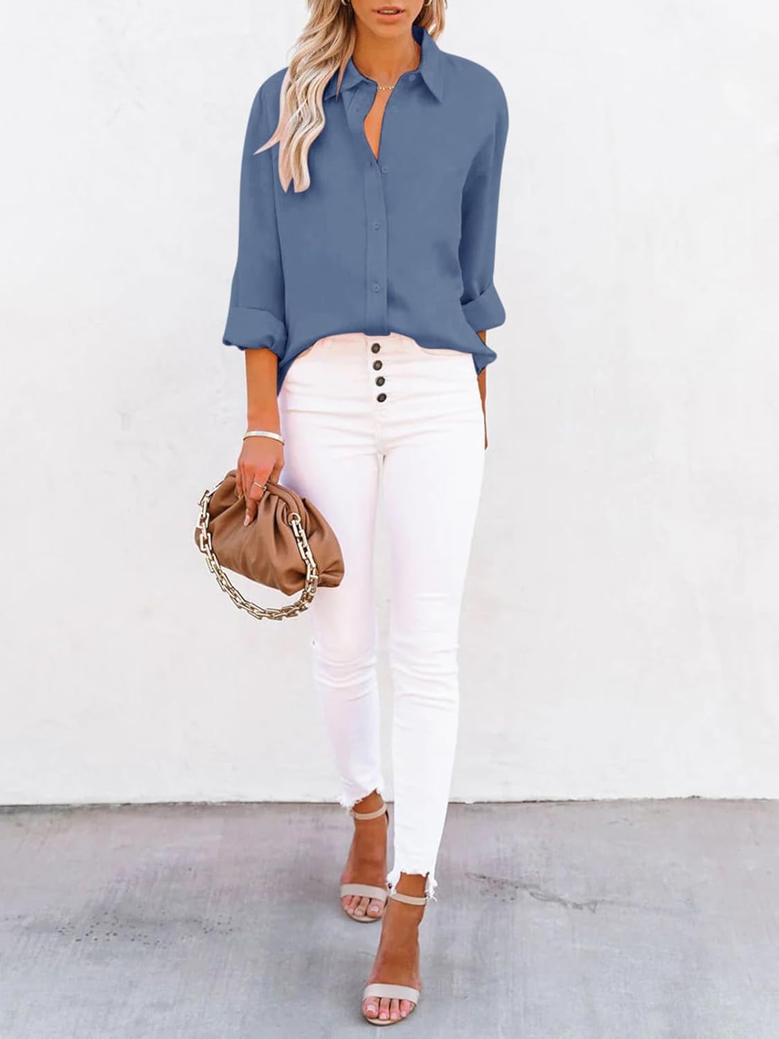 Fashion Style:Long Sleeve/Button Front/Solid/Turn Down Collar/Wrinkle Free No Iron/Button Down Shirt Machine Wash/Button Down Shirt Not See Through/Button Down Shirt Women for Layering Vest