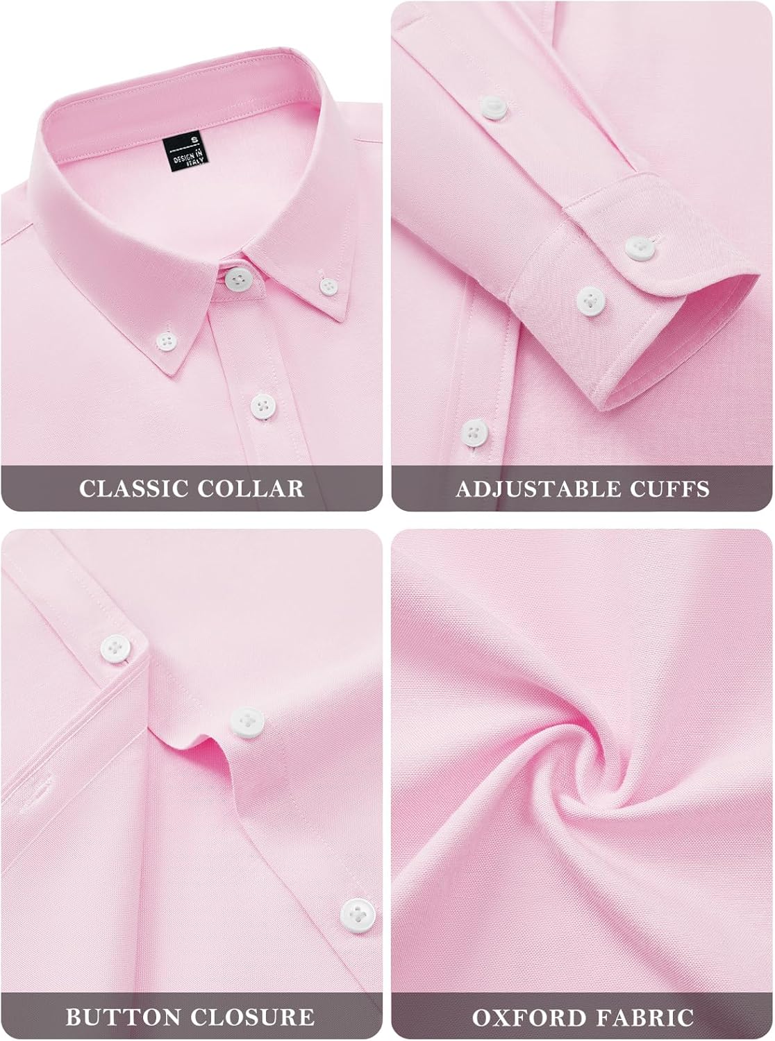 Oxford Button Down Shirts / V Neck Collared Dress Shirts / Button Up Shirts / Long Sleeve Casual Blouses / Dressy Casual Tops / Regular fit Business Shirts/ Front Button Solid Shirts/ Wrinkle Free/ No Iron Dress Shirts.