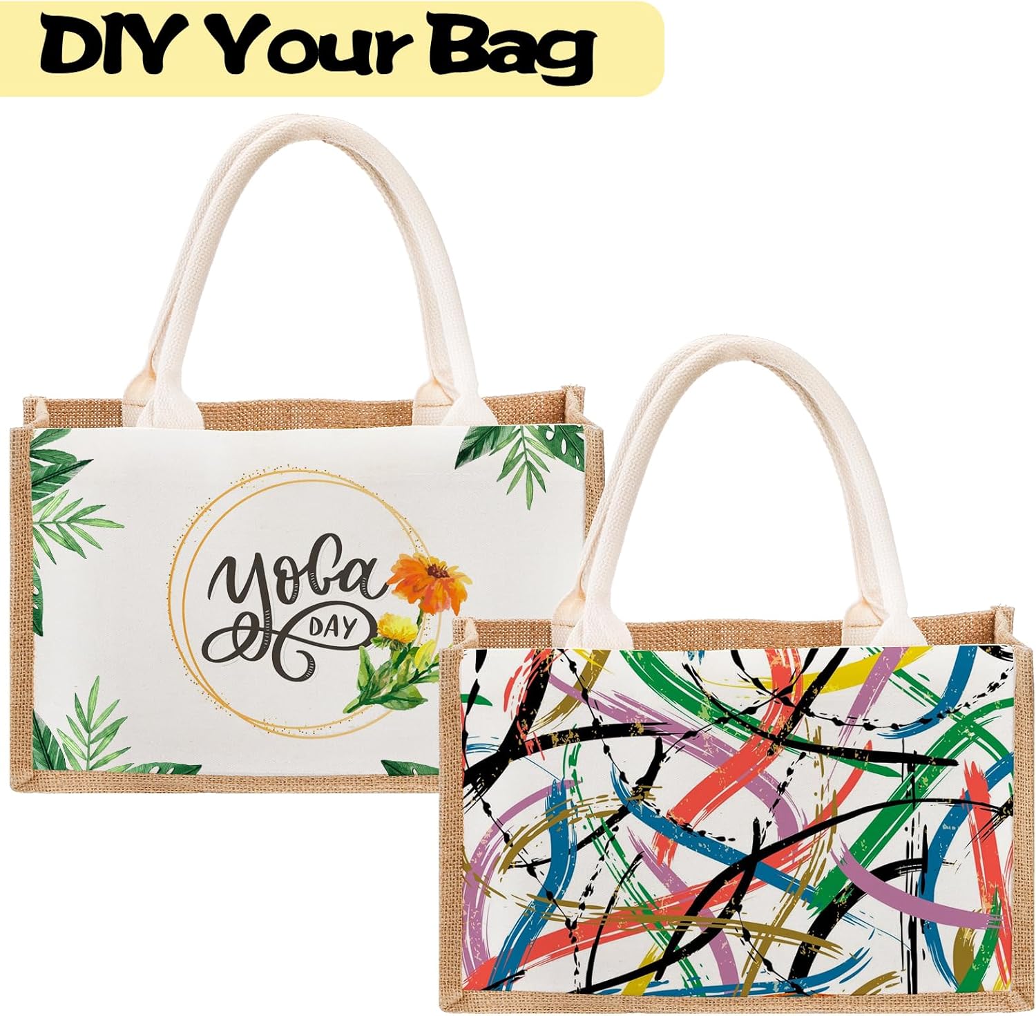 Medium Size Tote Bag: Include 6 pack jute tote bag, each measures 14.7” x 9.8” x 4.5”, large enough to hold various items of everyday life, meet your diverse using needs