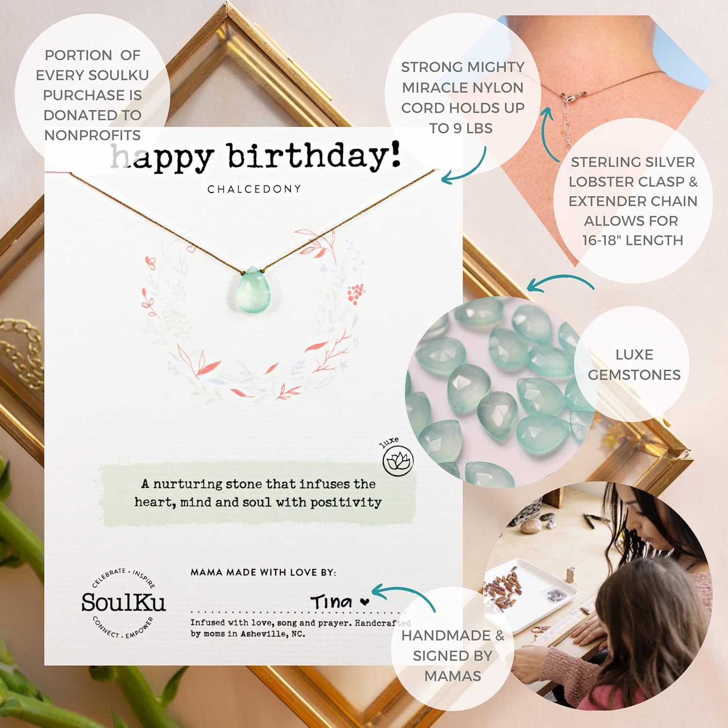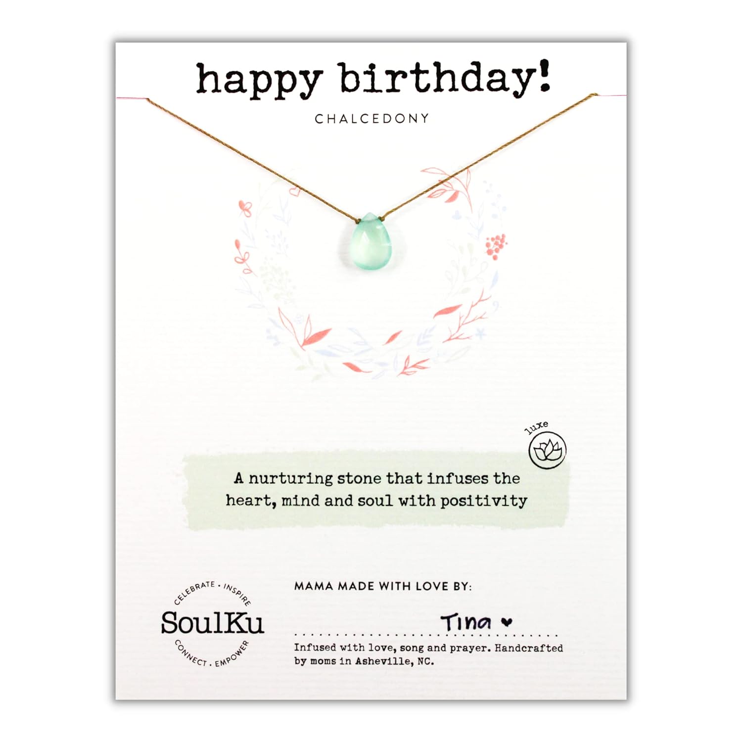 INSPIRATIONAL NECKLACE. Chalcedony 8 x 12 mm faceted luxe gemstone is a nurturing stone that infuses the heart, mind, and soul with positivity—the perfect way to say “Happy Birthday!” Our Luxe Collection features luxe gemstones selected to offer support, inspire, and fill your soul with love. And each special gemstone is blessed with love and light.
