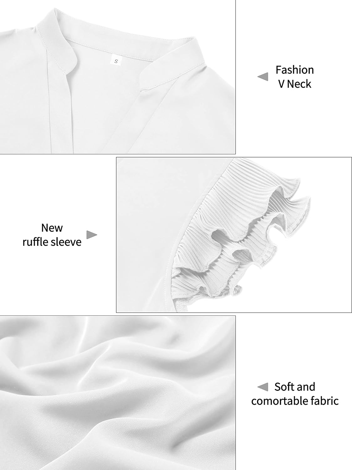 The cute shirt features ruffle sleeves and a V-neck design. Exquisite,cute and casual style.